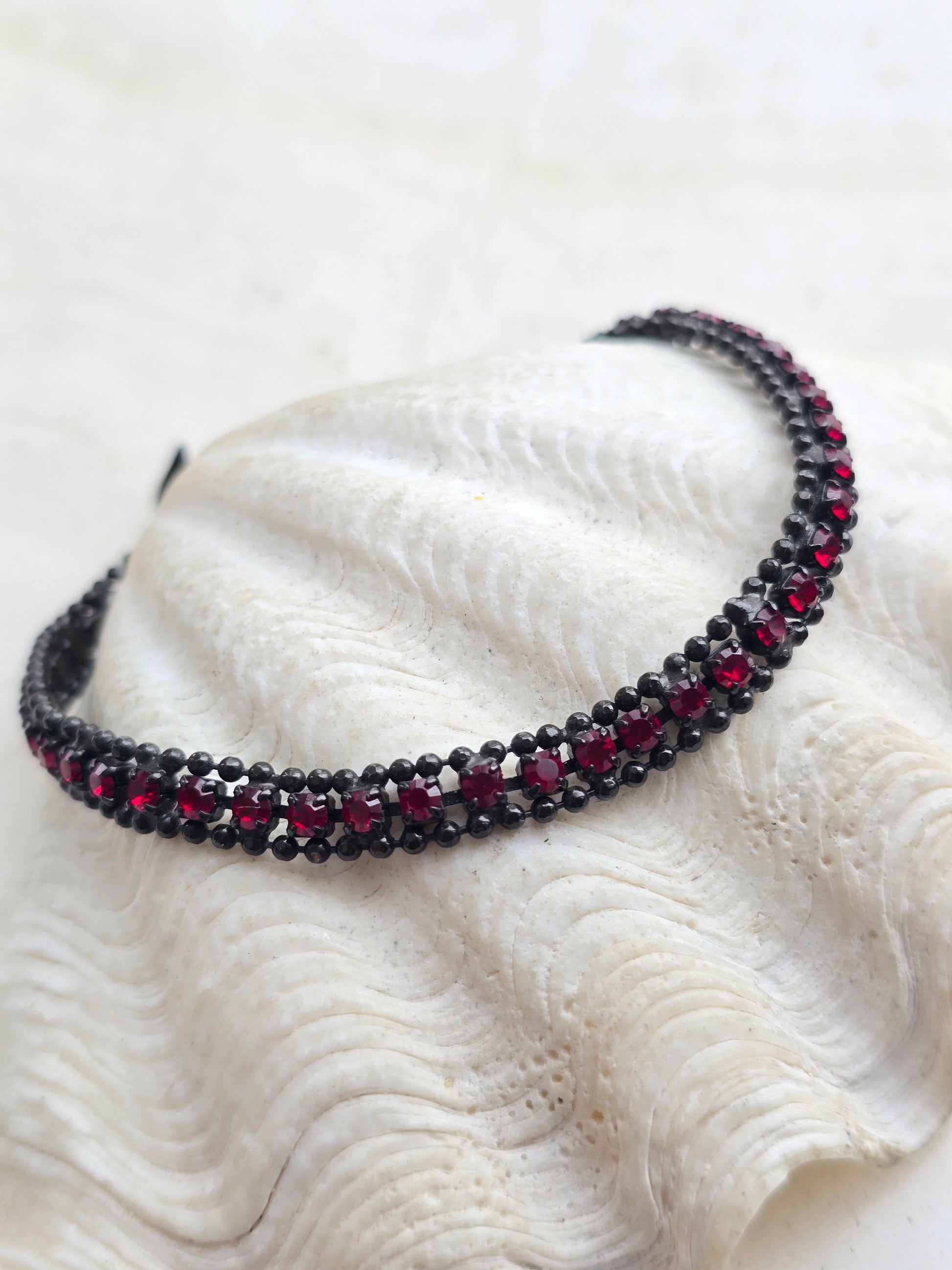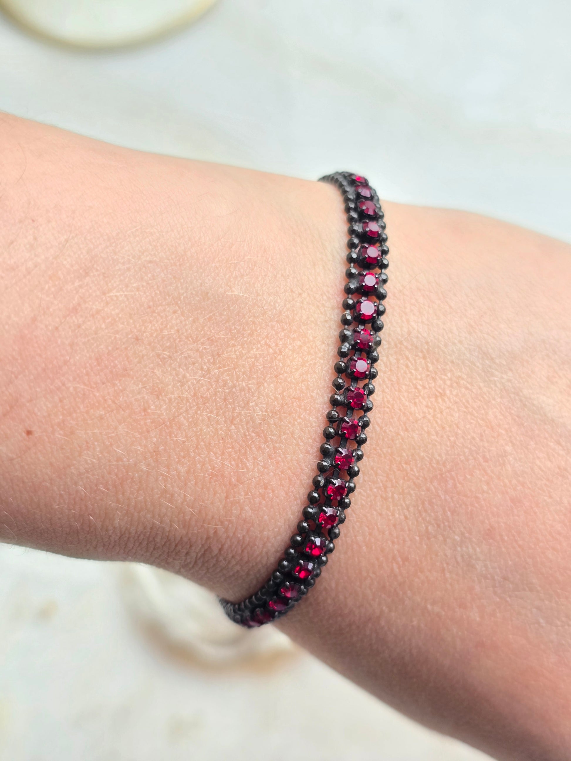 AGATHA PARIS juoda apyrankė su raudonais stiklo kristalais