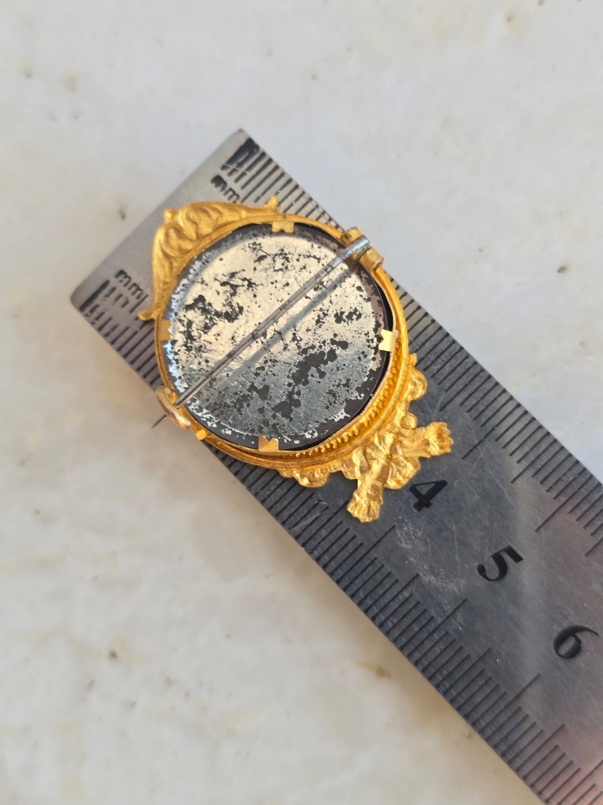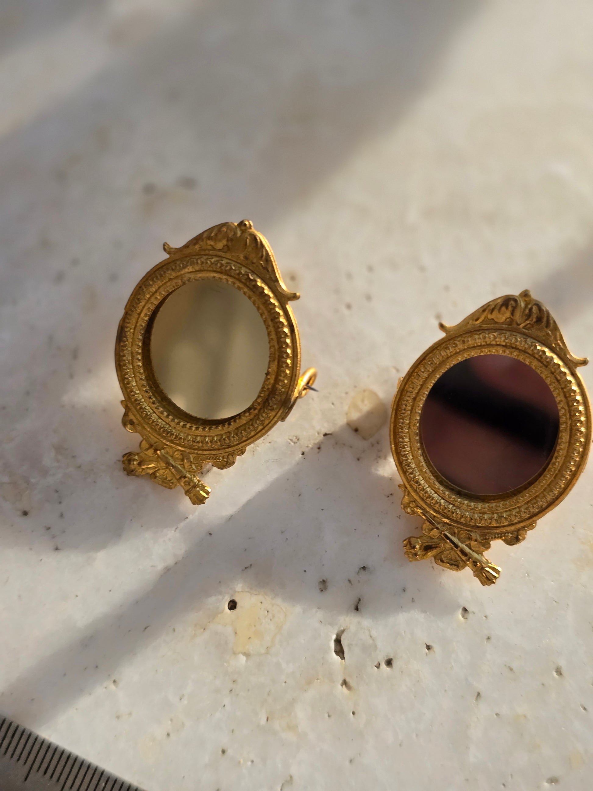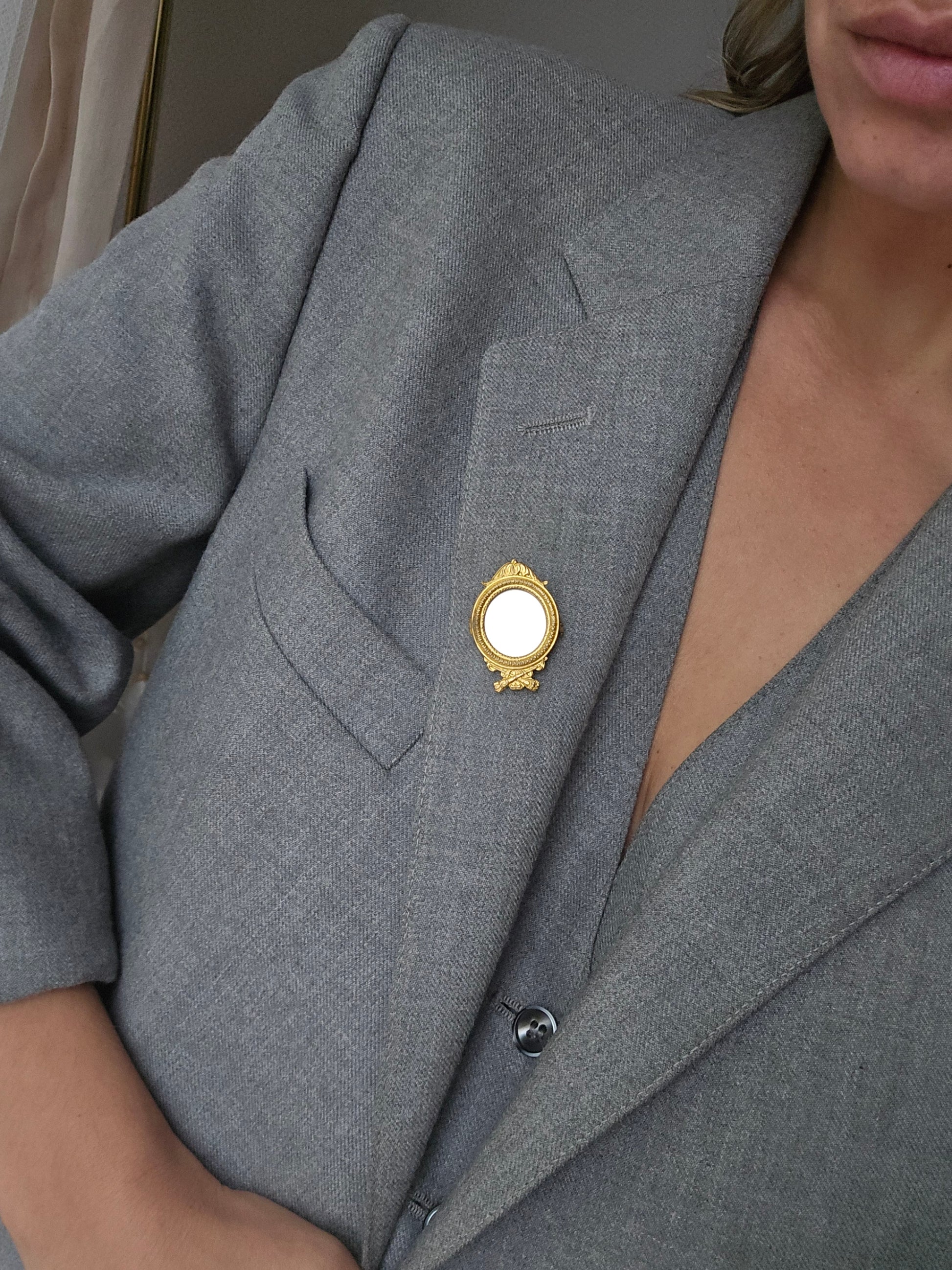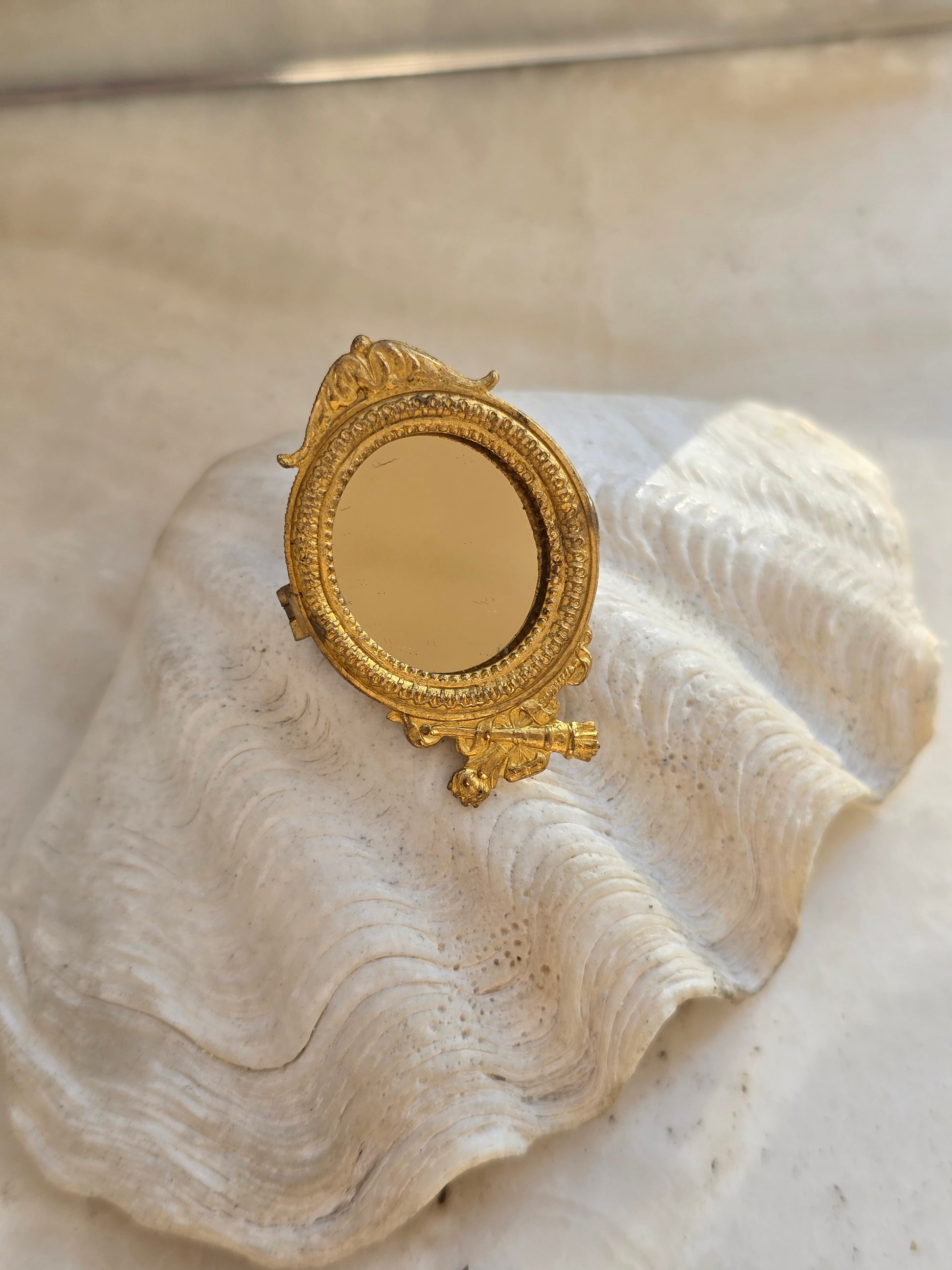 Antikvarinė sagė rėmelis nuotraukai su įdėtu veidrodėliu