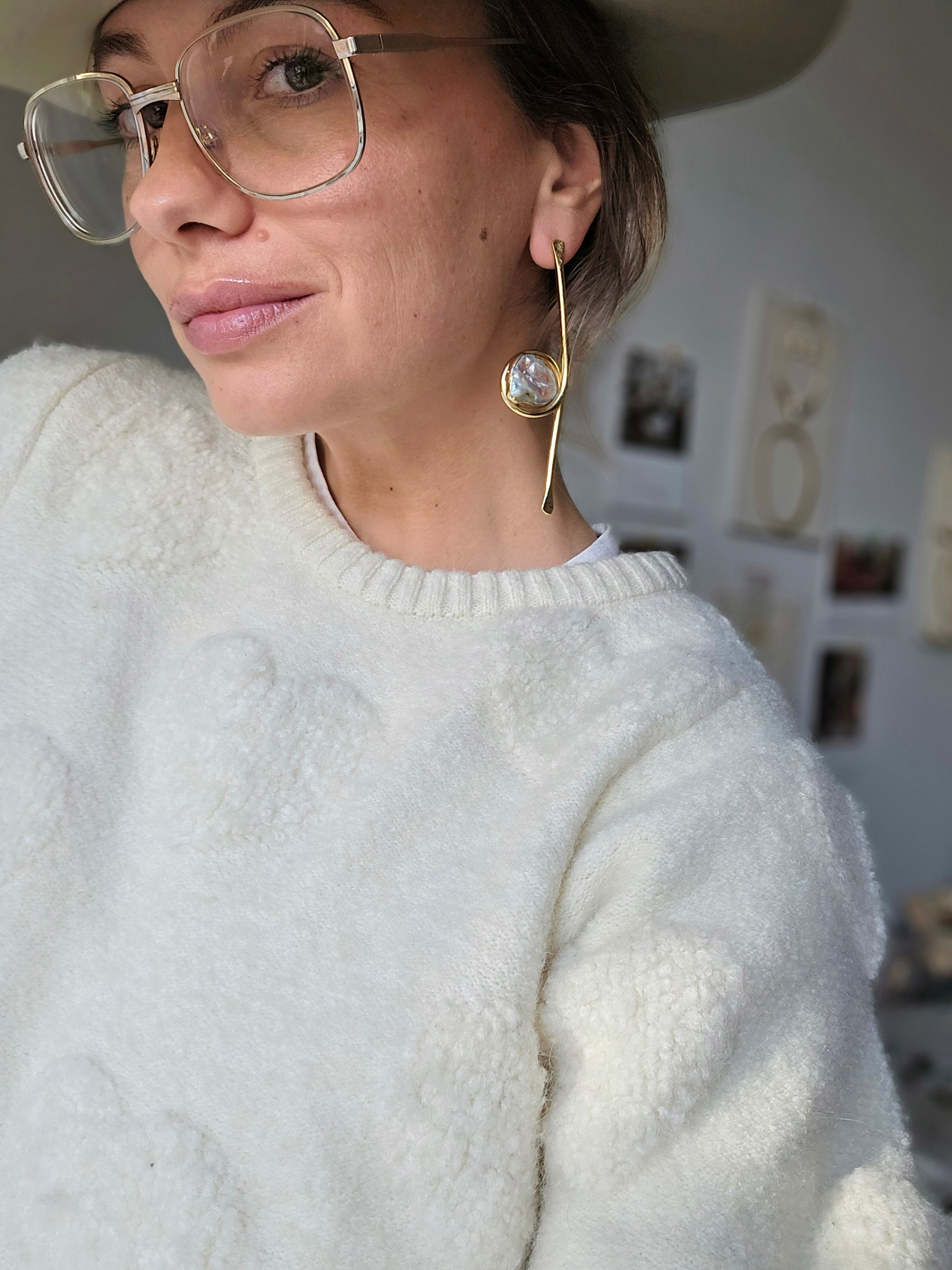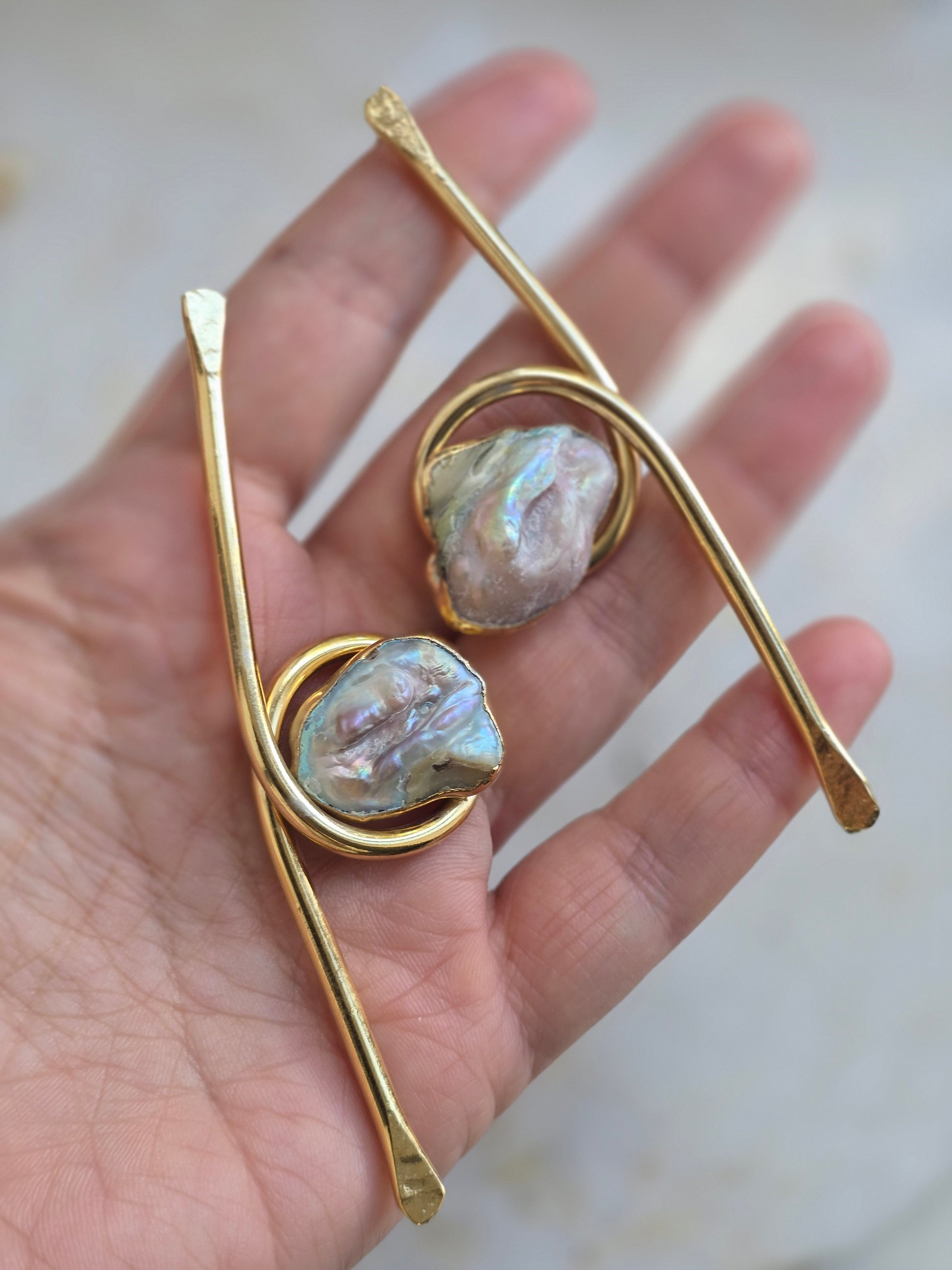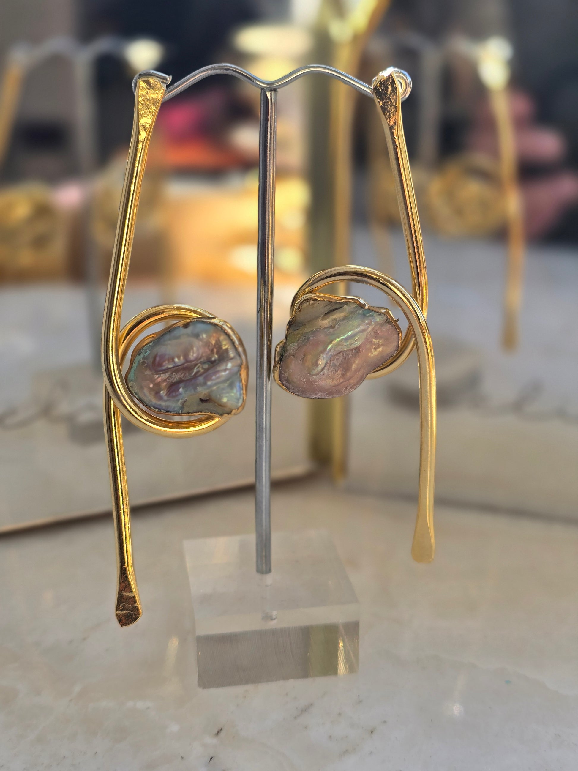 Aukso spalvos ilgi auskarai su natūraliais perlais