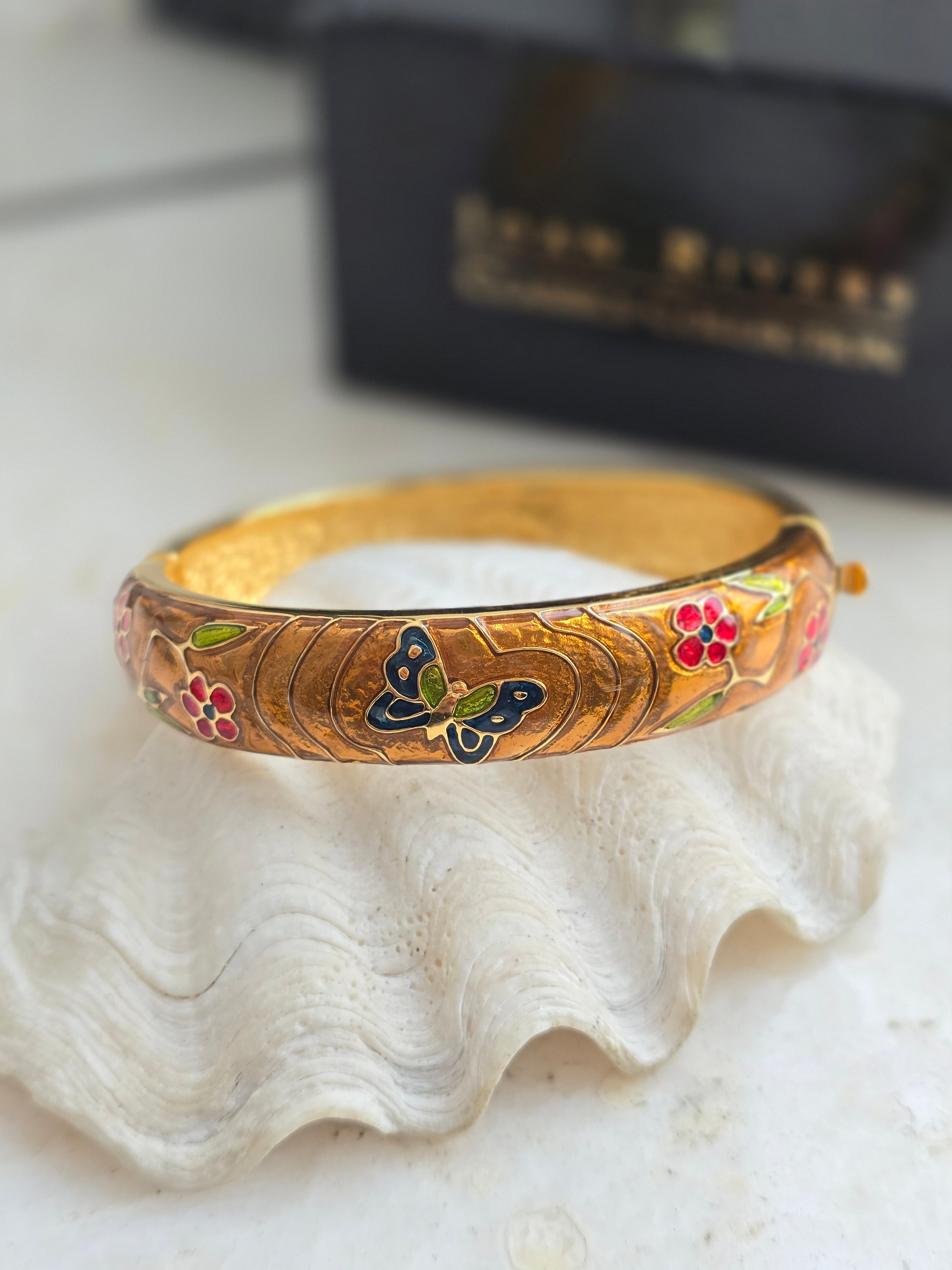 Aukso spalvos JOAN RIVERS apyrankė su emale originalioje dėžutėje