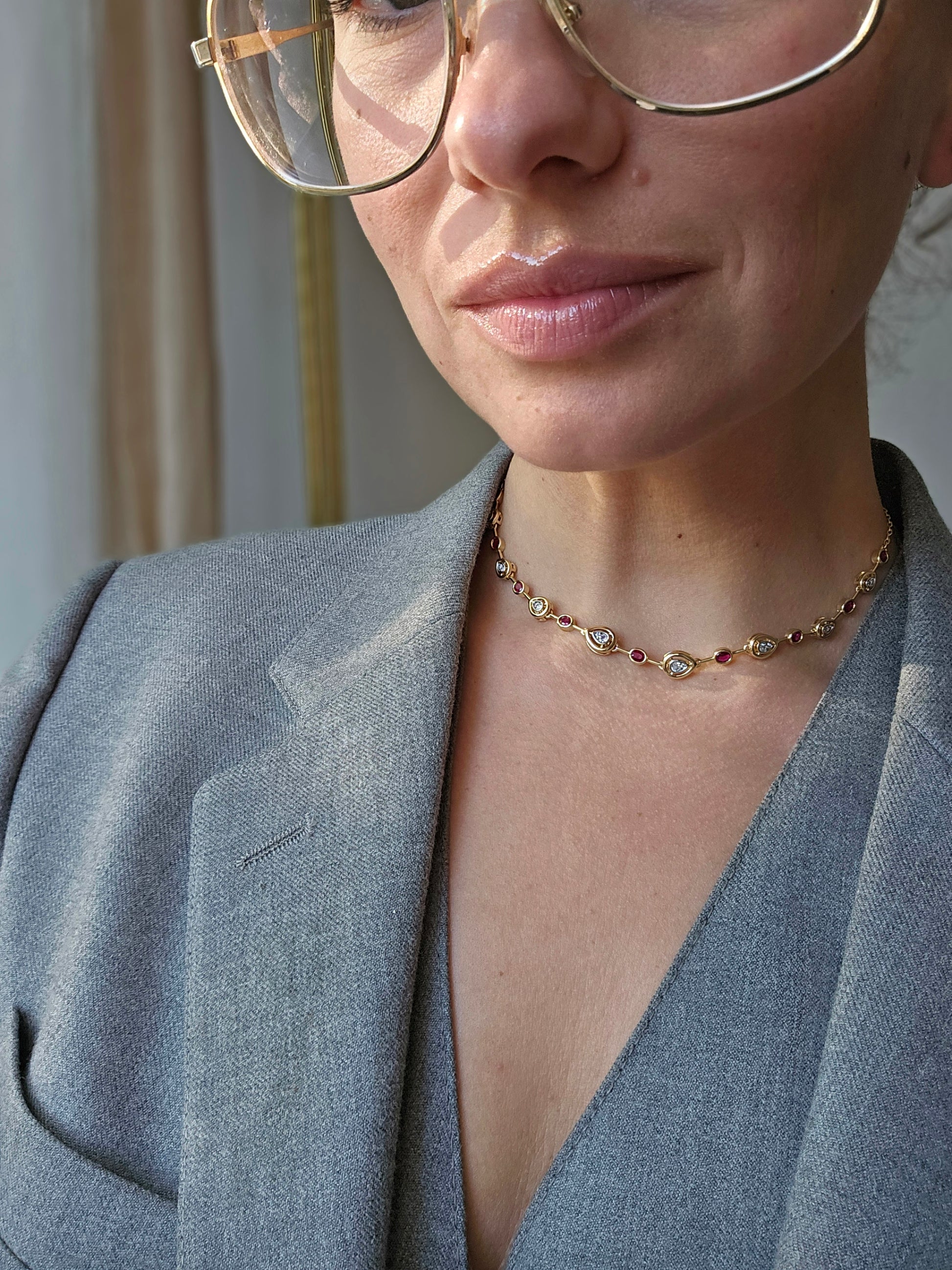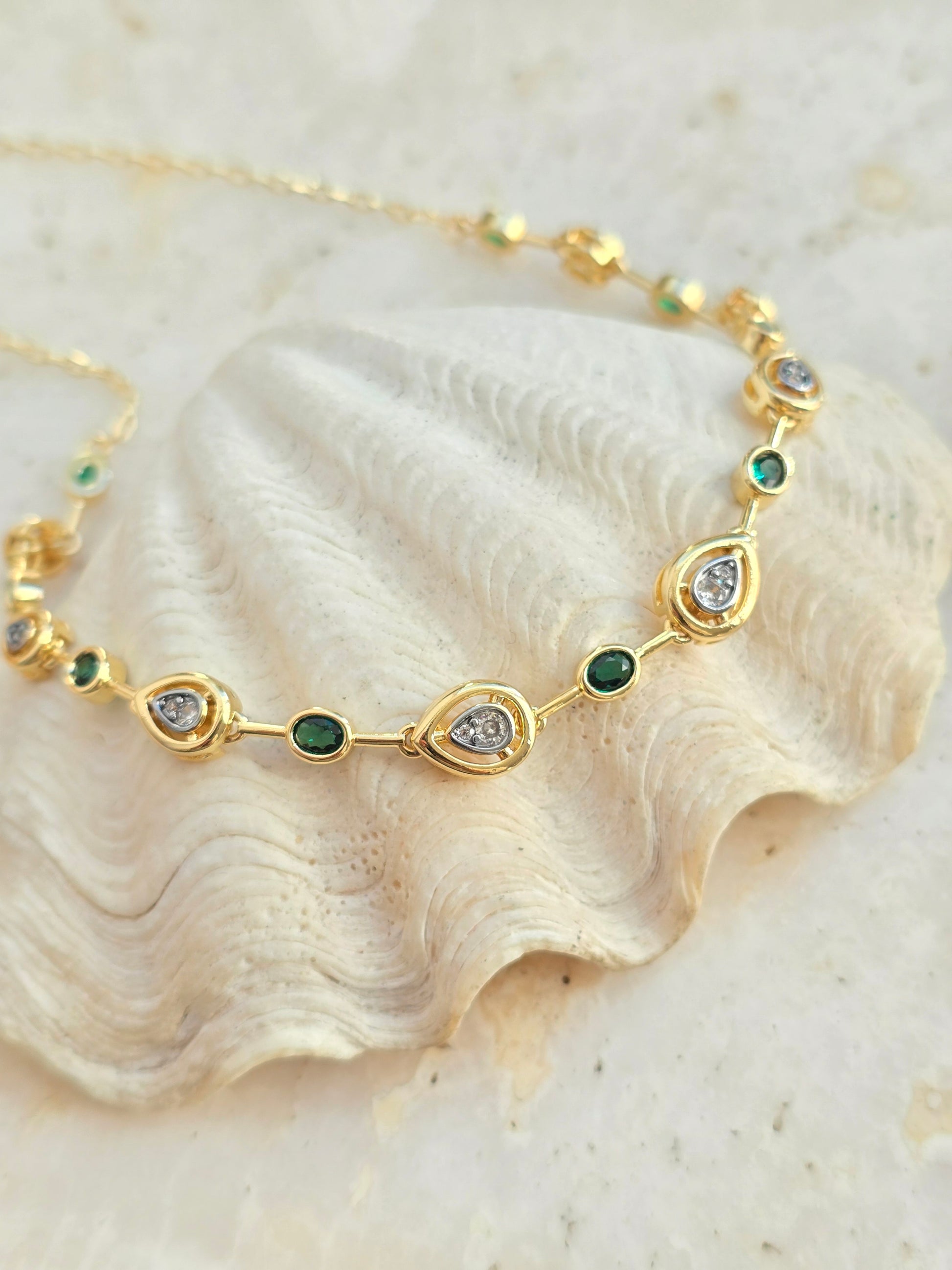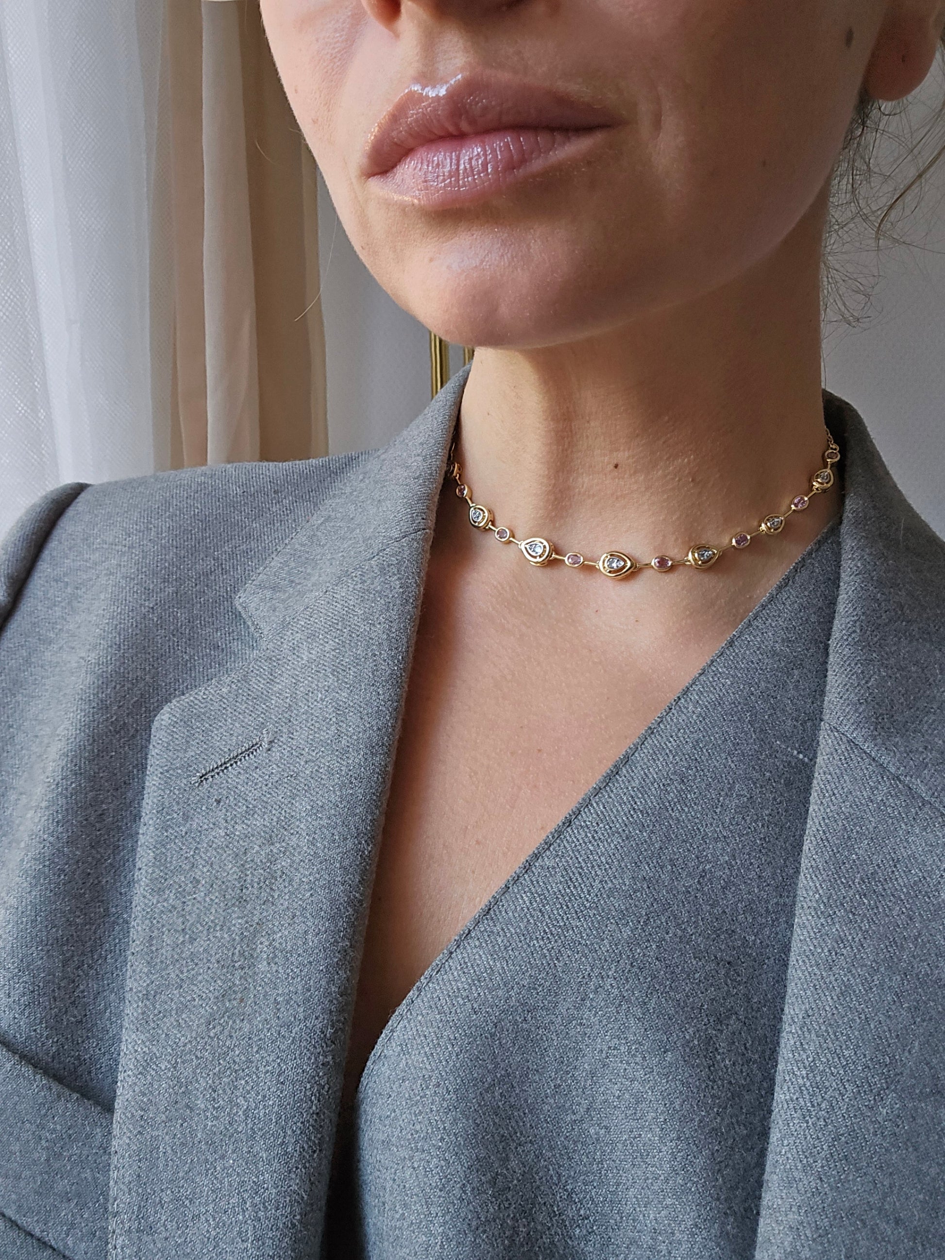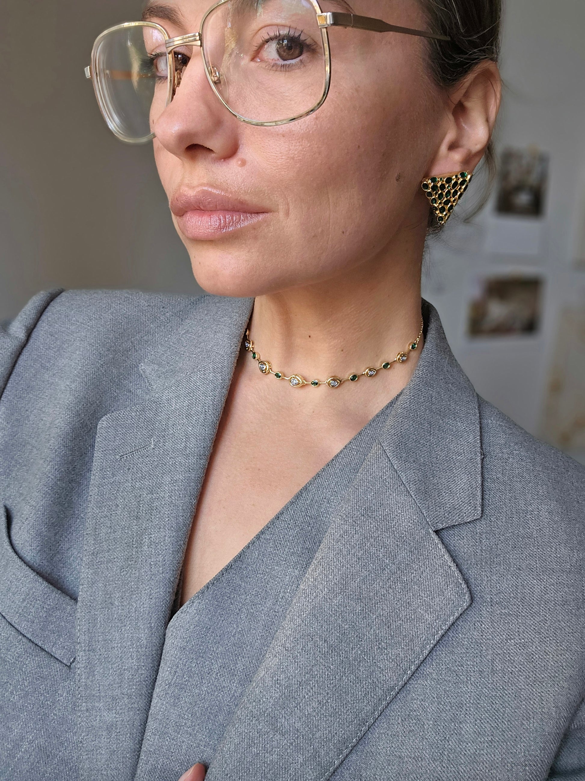 Aukso spalvos kaklo papuošalas su cirkonio kristalais
