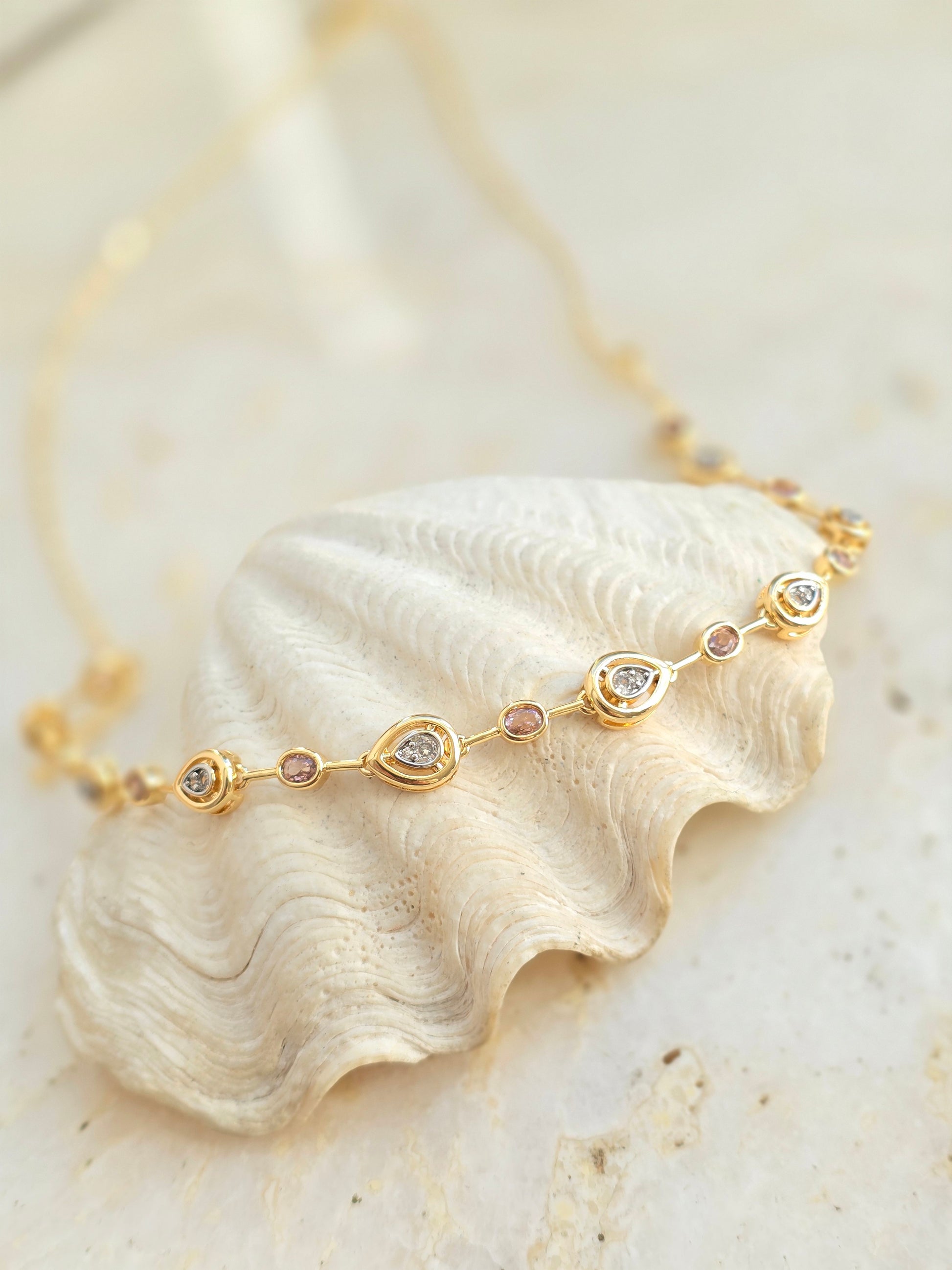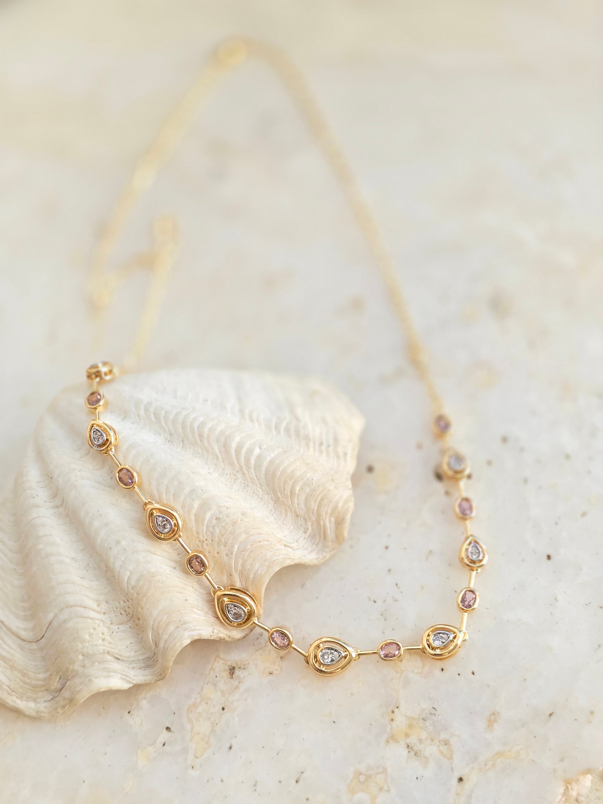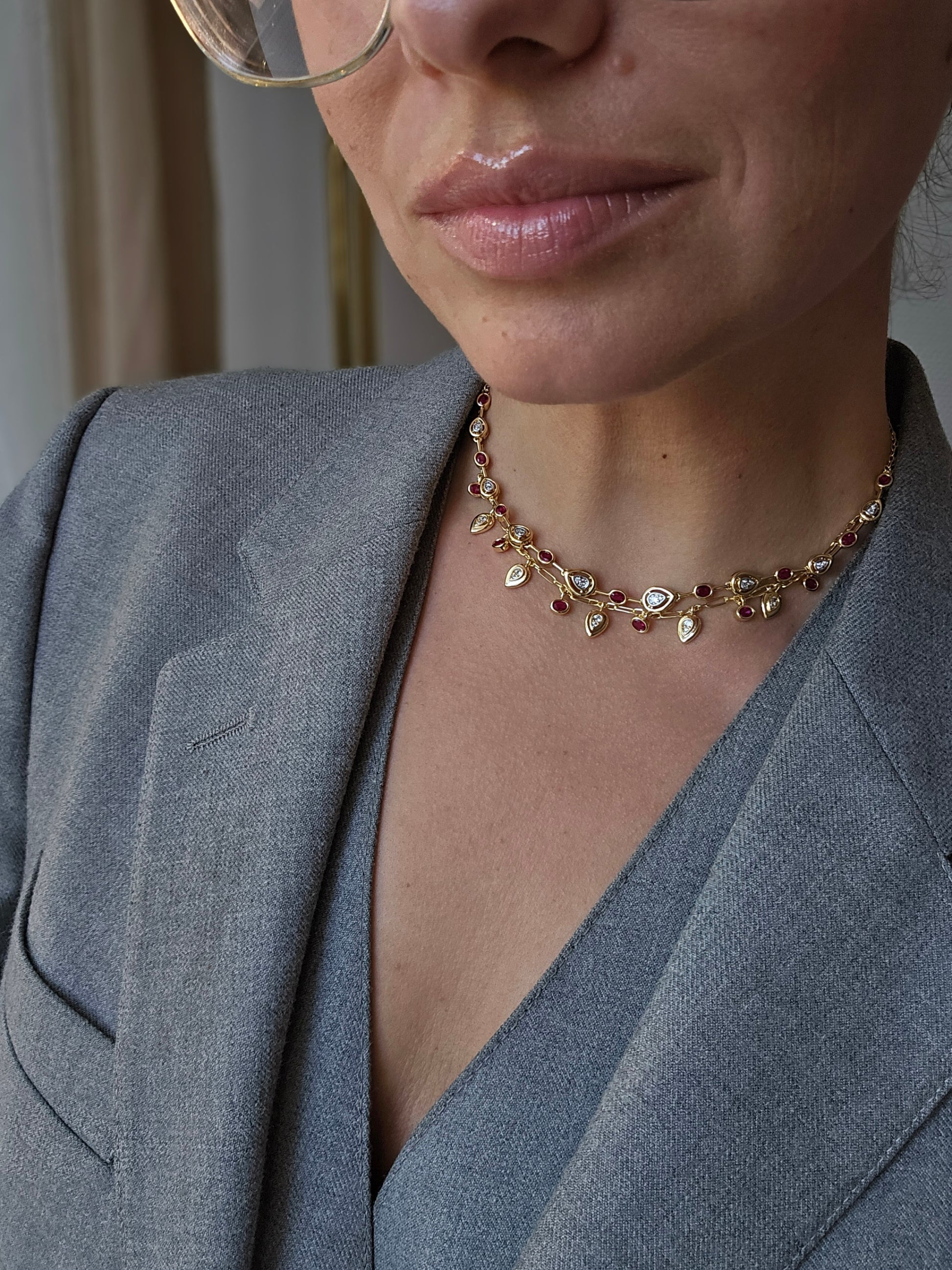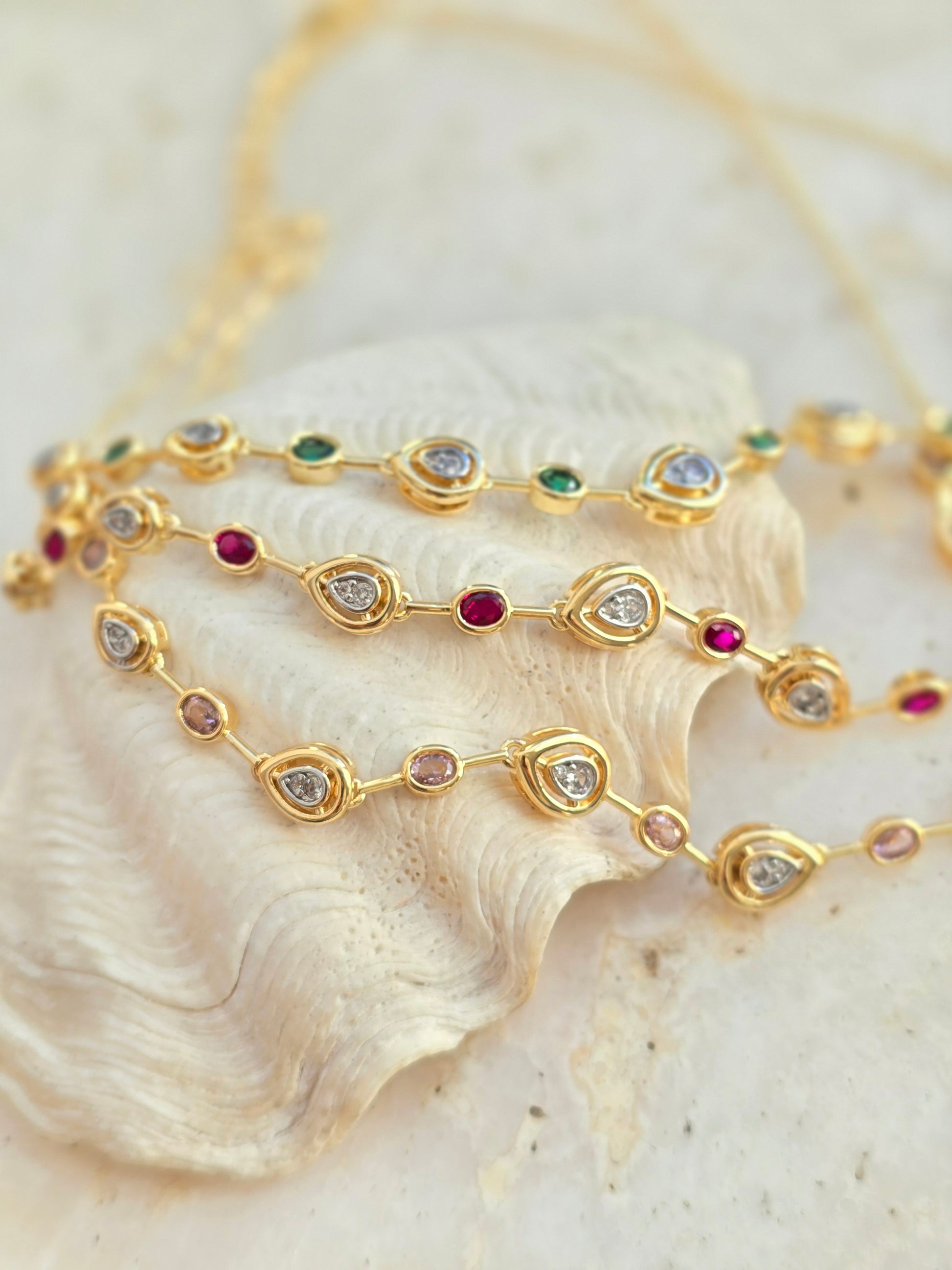 Aukso spalvos kaklo papuošalas su cirkonio kristalais