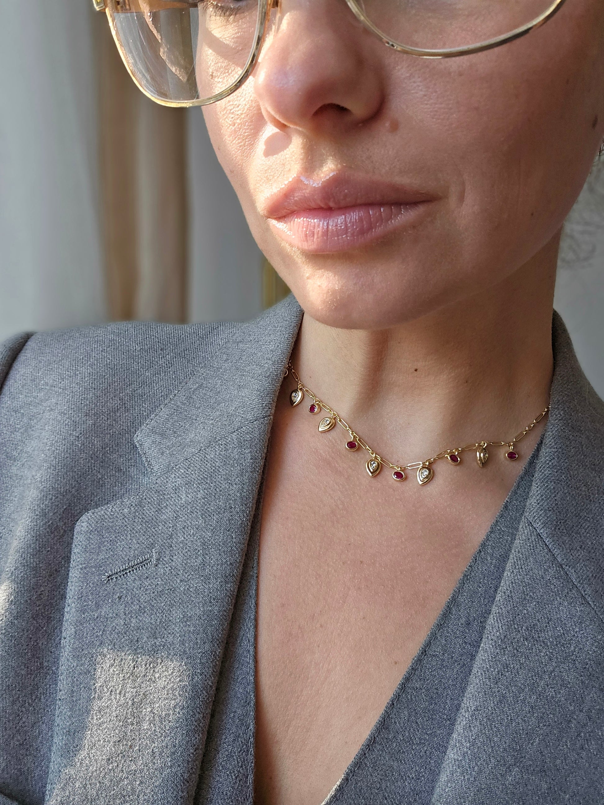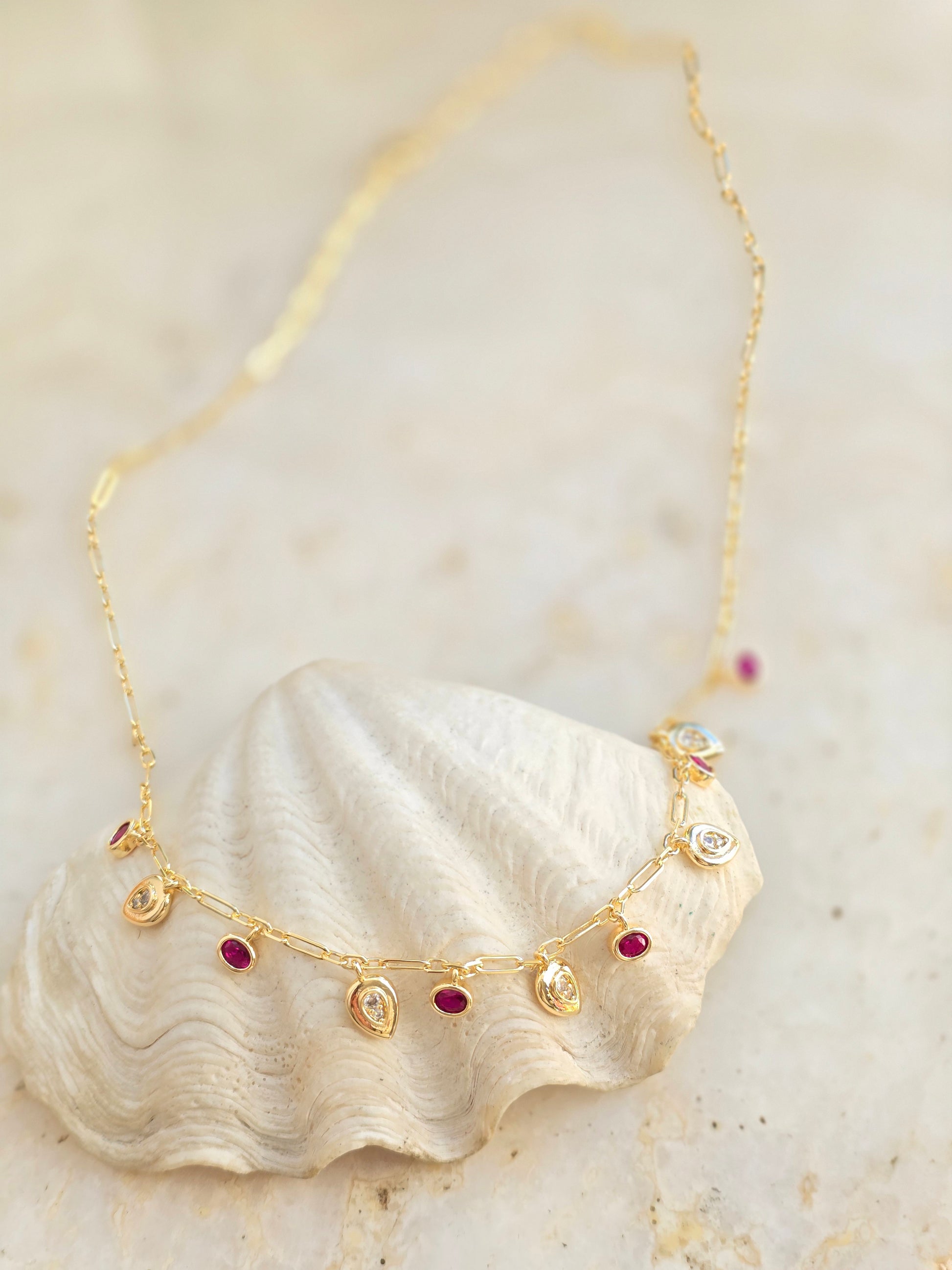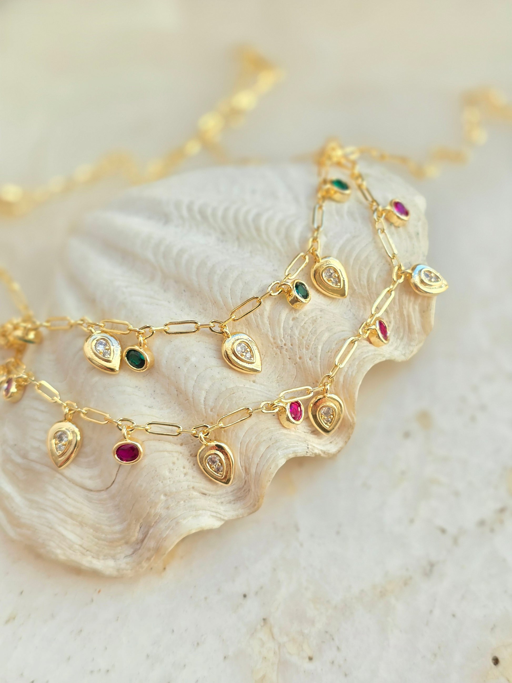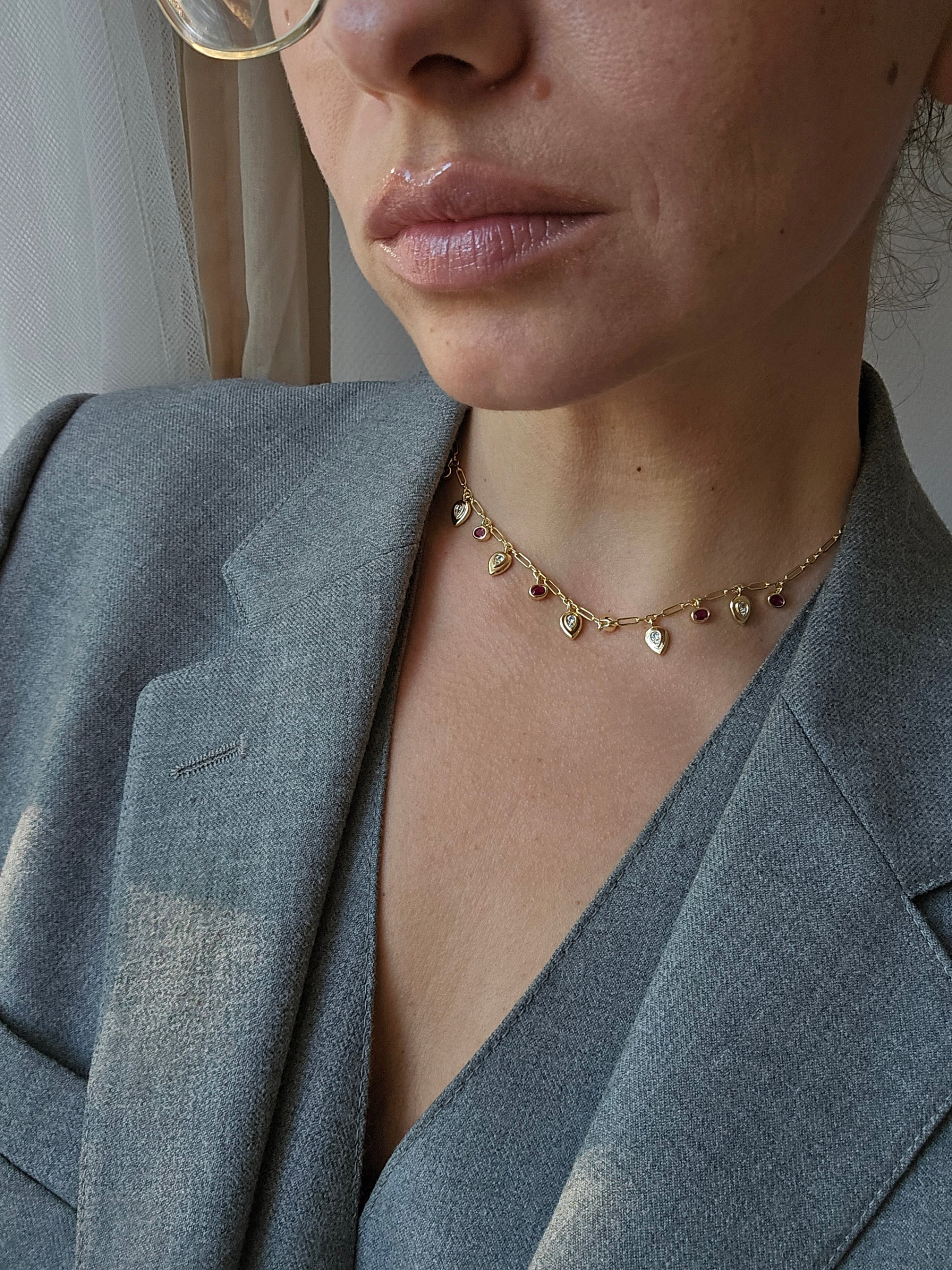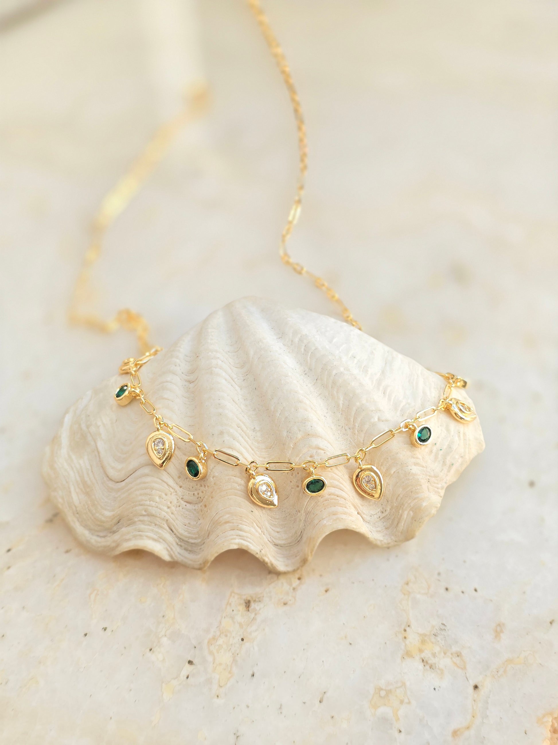Aukso spalvos kaklo papuošalas su cirkonio kristalais