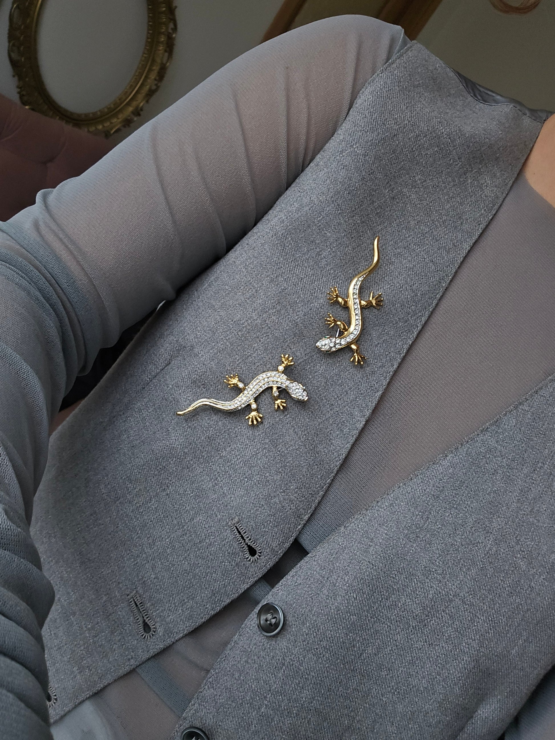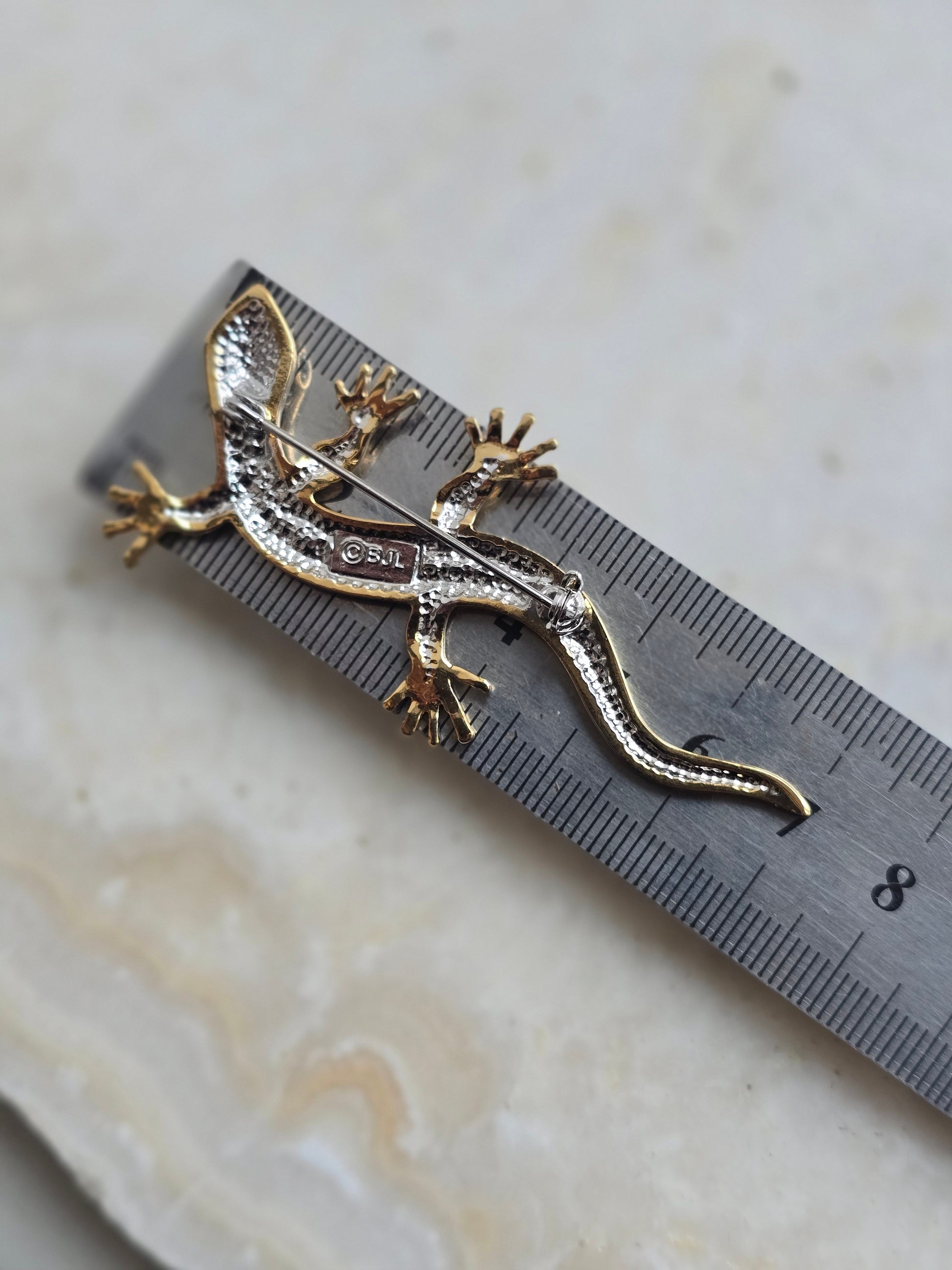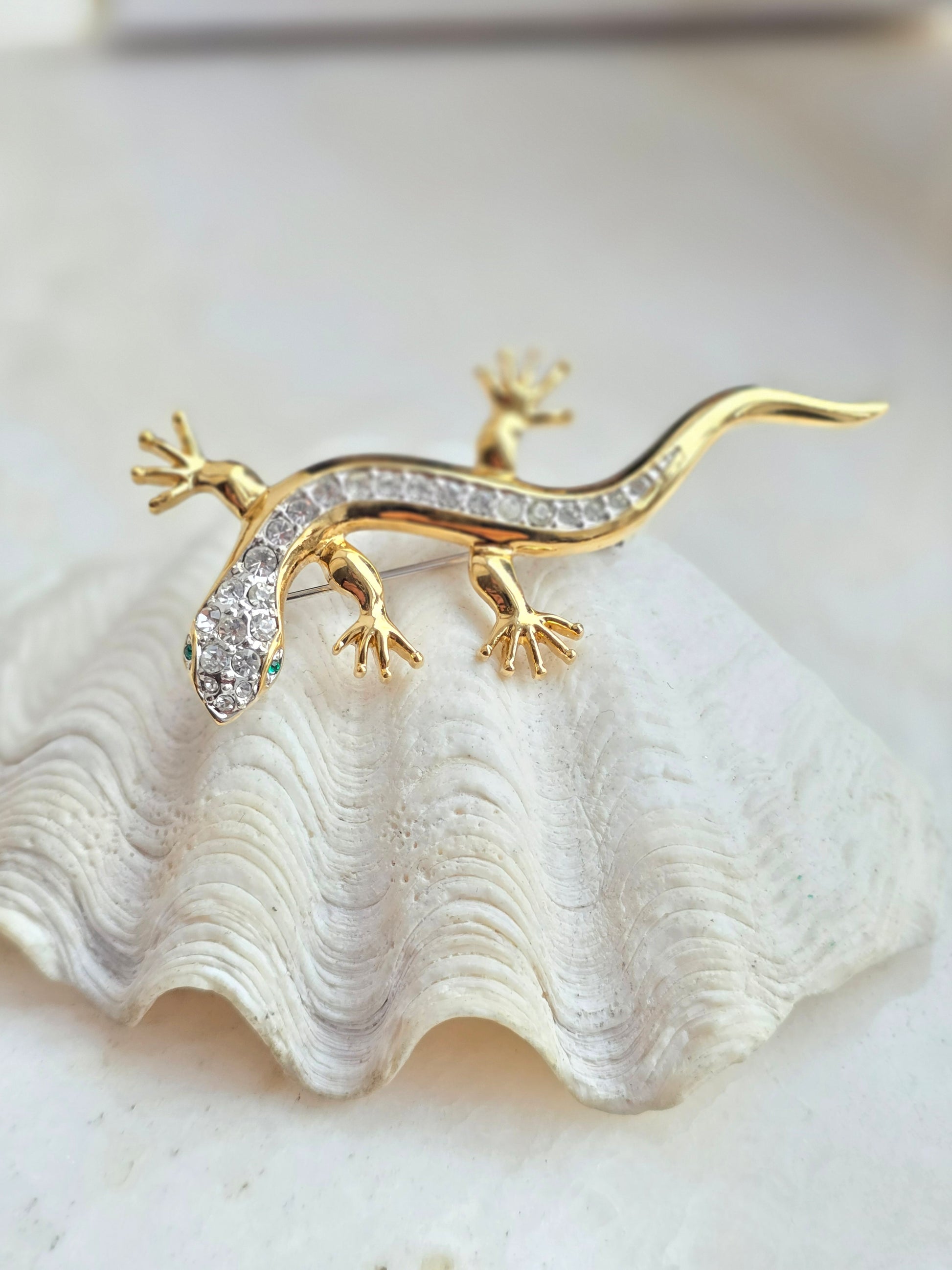 Aukso spalvos sagė driežiukas su kristalais
