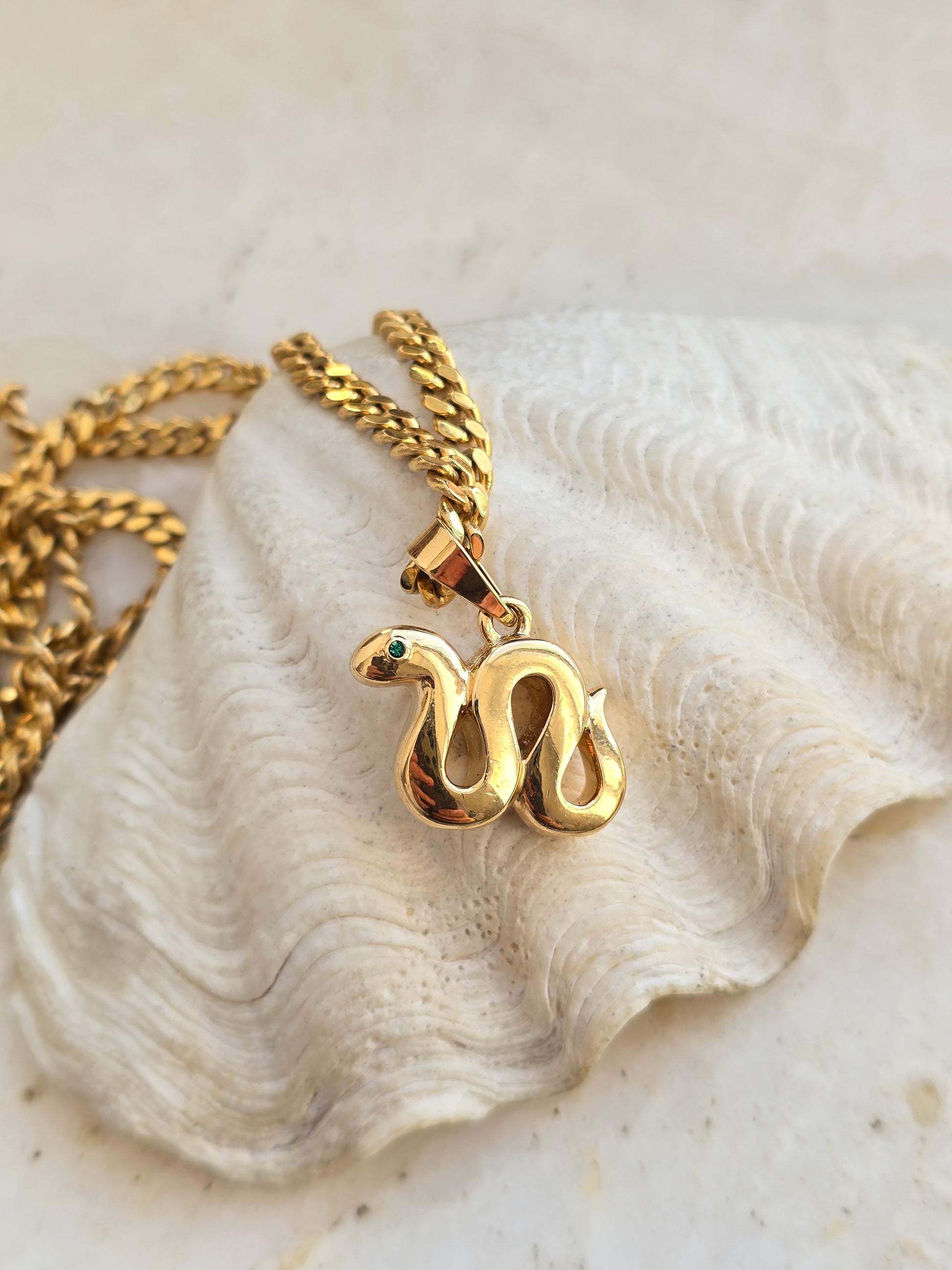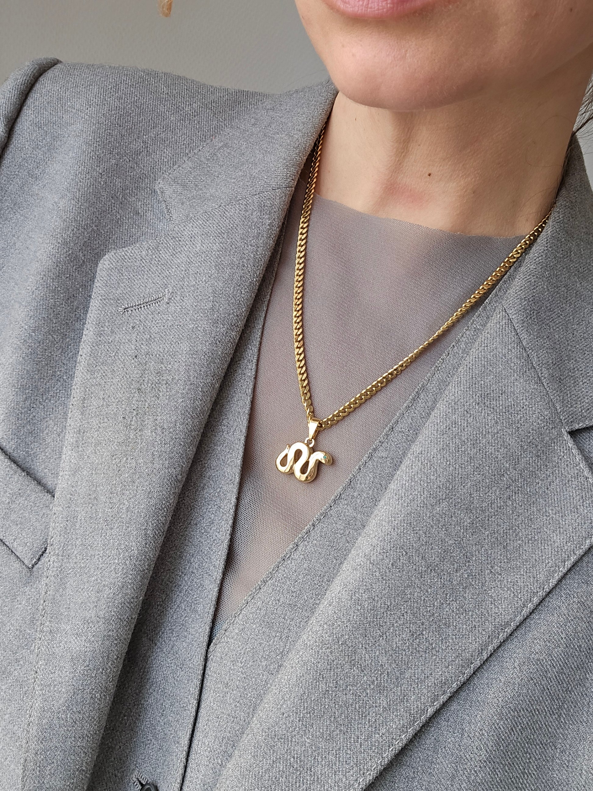 Paauksuotas PIERRE LANG pakabukas gyvatė + vintažinė aukso spalvos grandinėlė