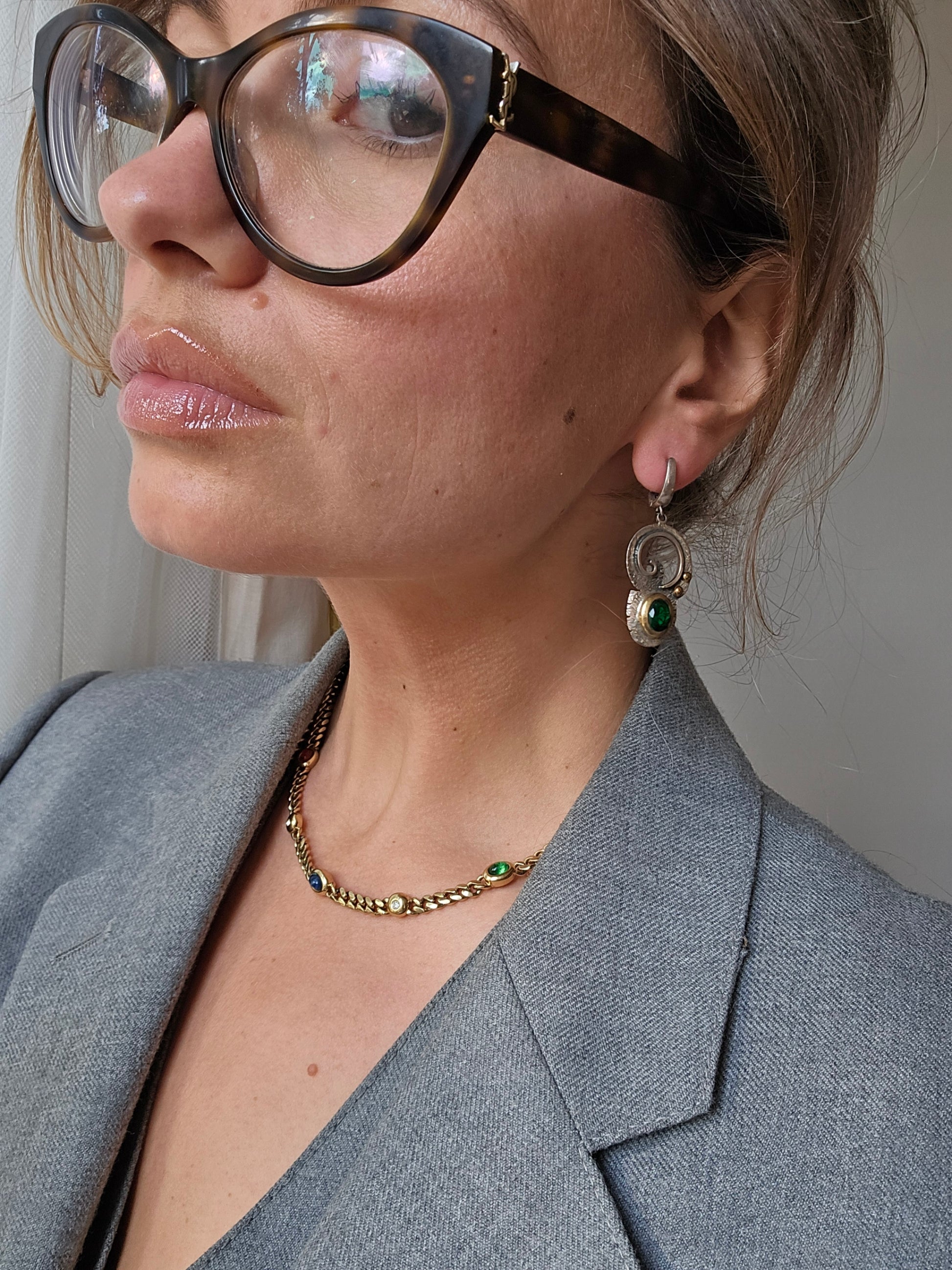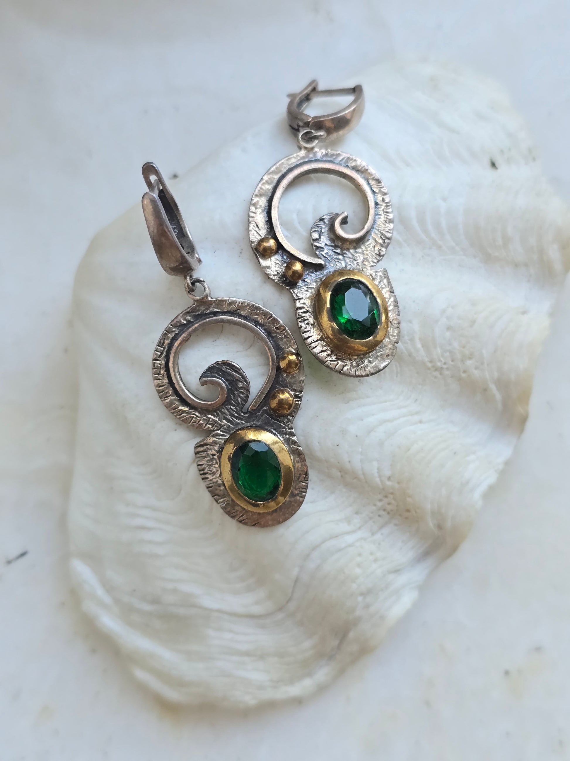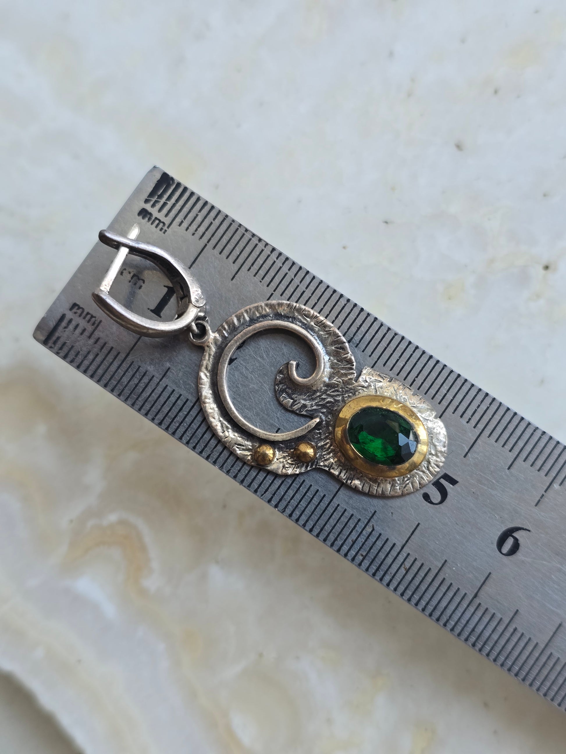 Sidabriniai auskarai su stiklo kristalu (sidabras + žalvaris)