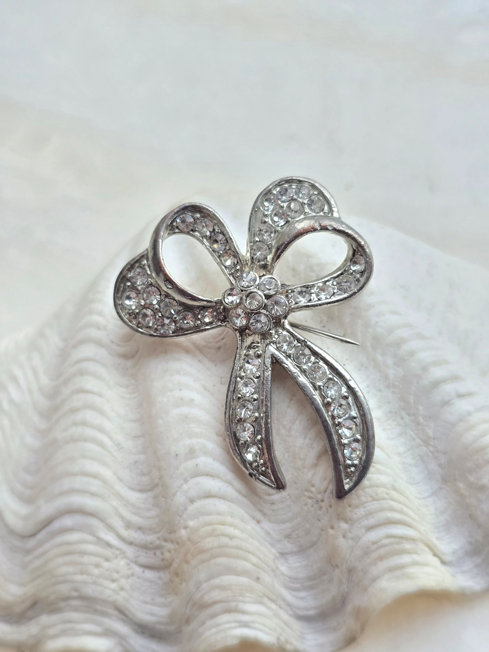 Sidabro spalvos sagė su stiklo kristalais bantukas