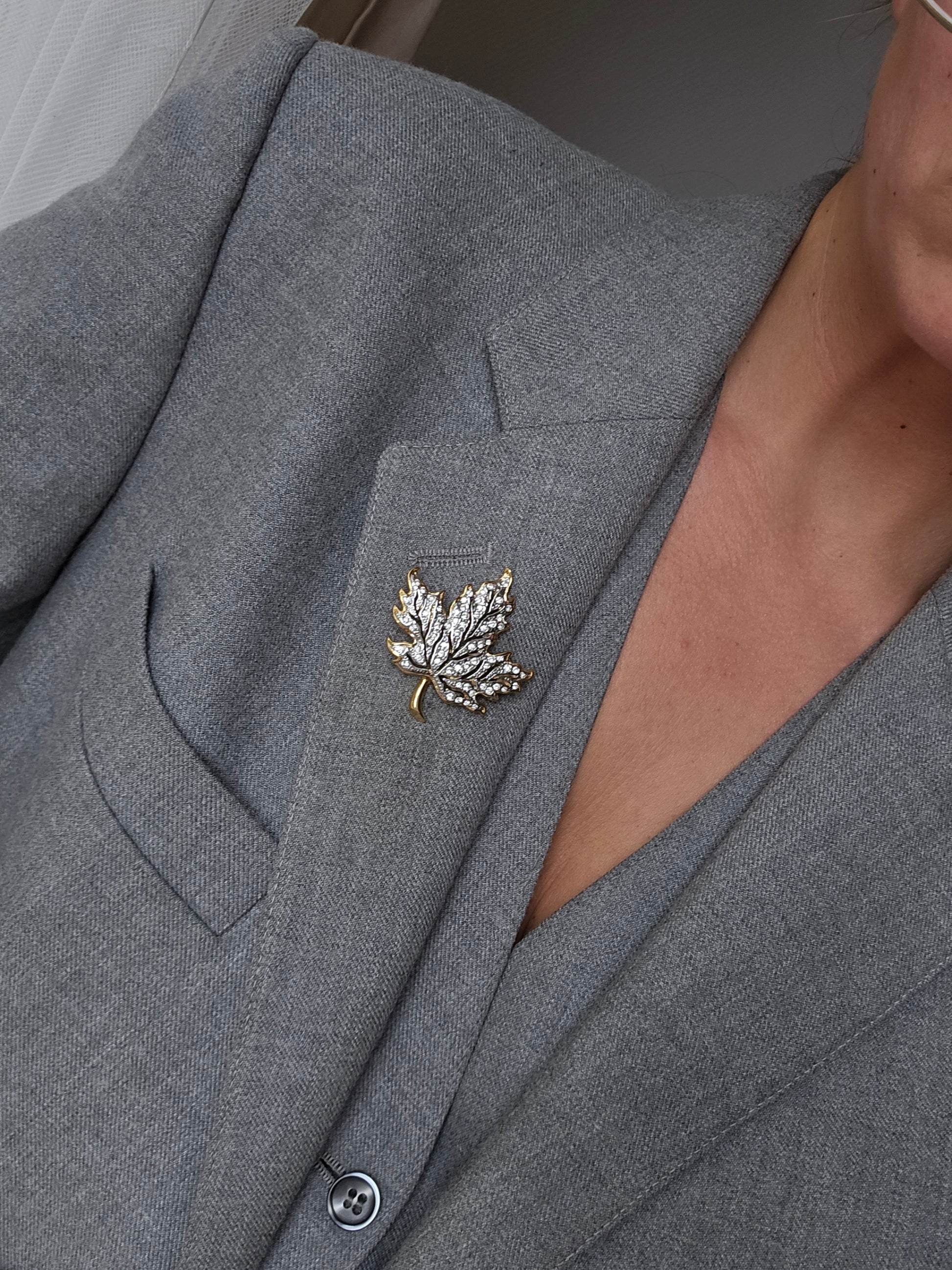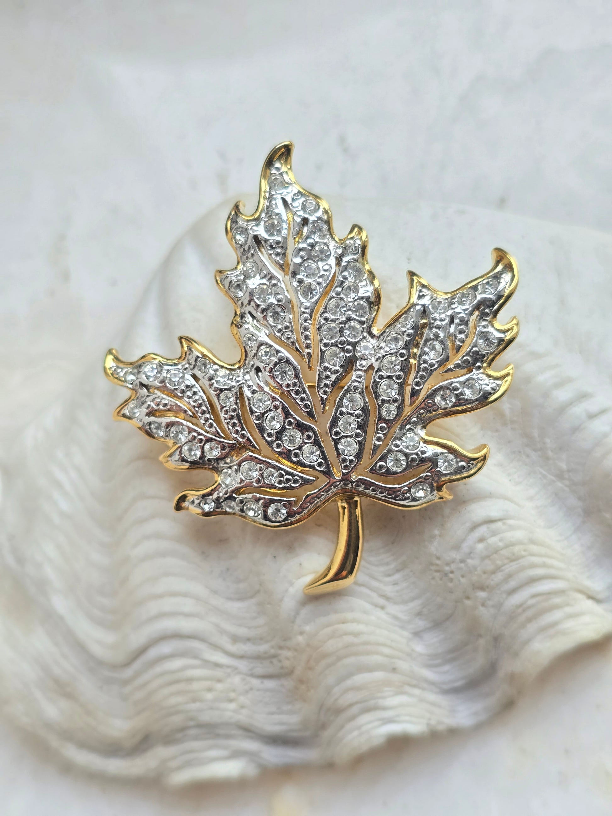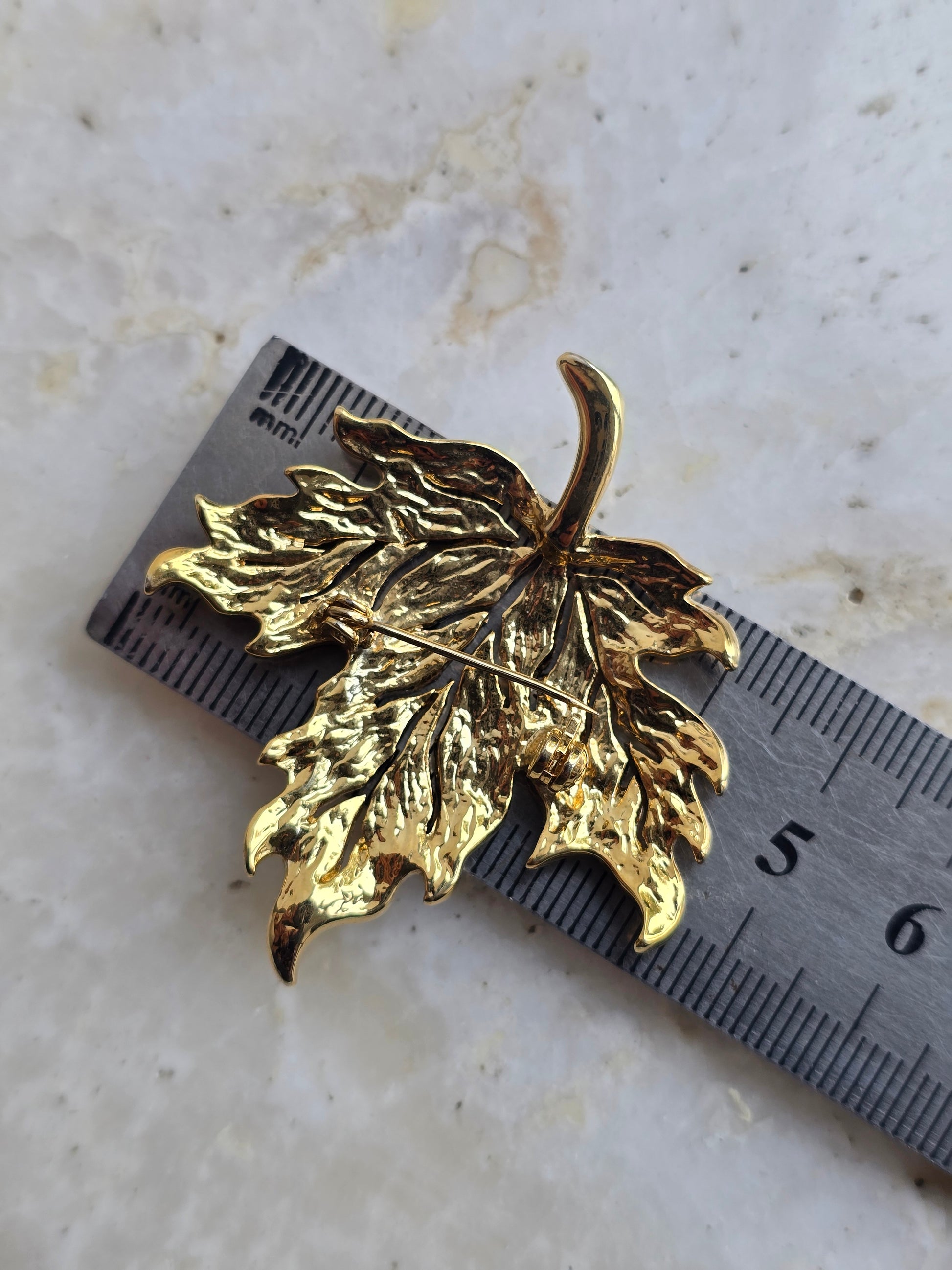 Vintažinė aukso spalvos sagė klevo lapelis