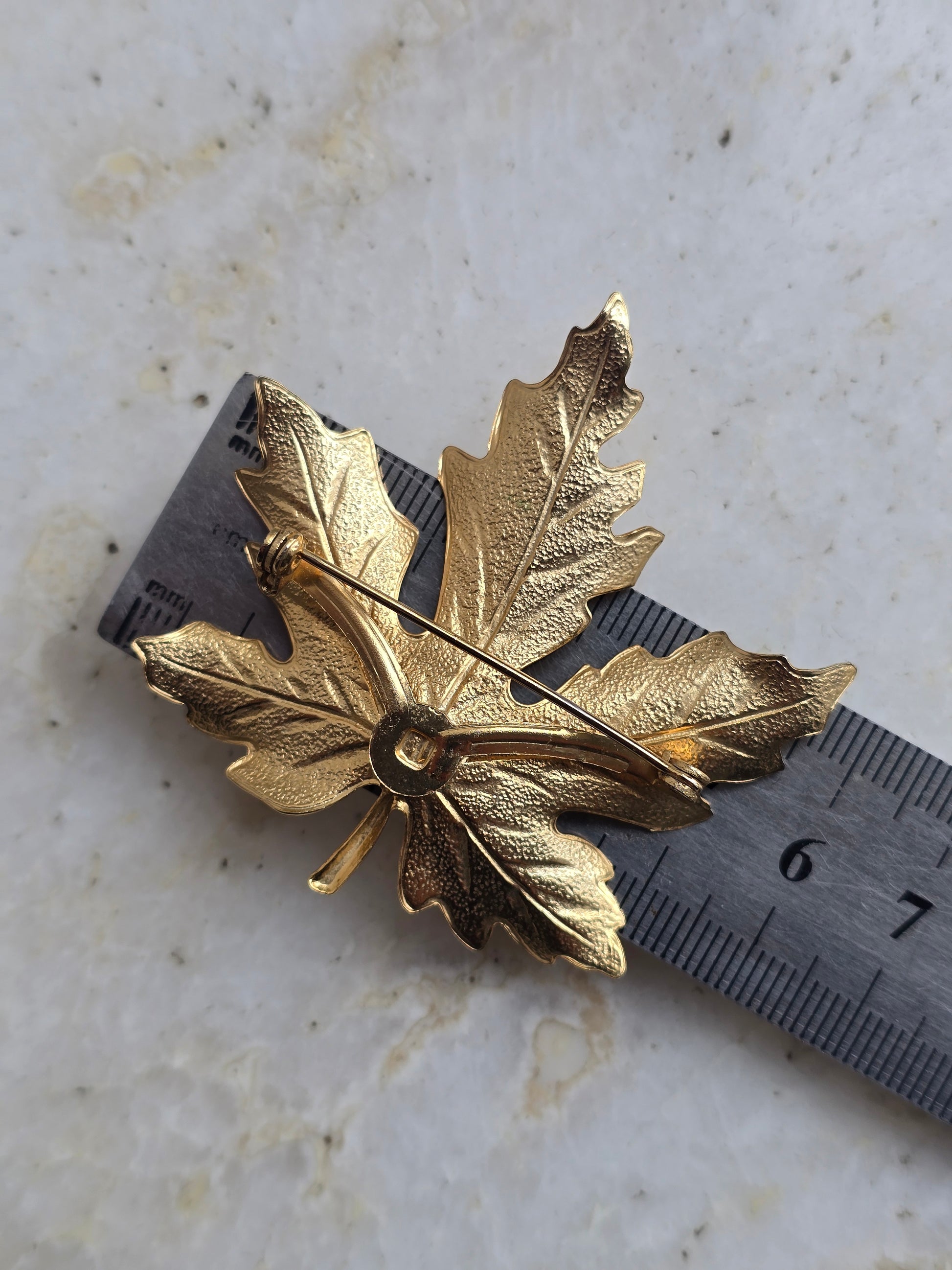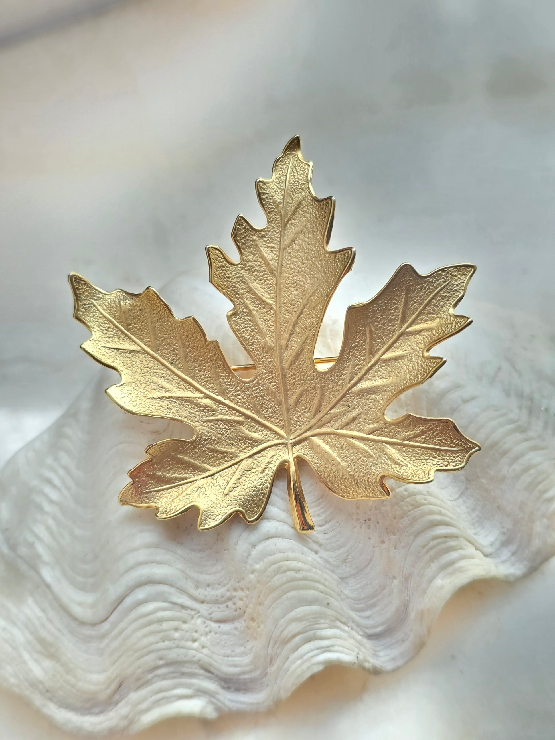 Vintažinė matinio aukso spalvos sagė klevo lapas