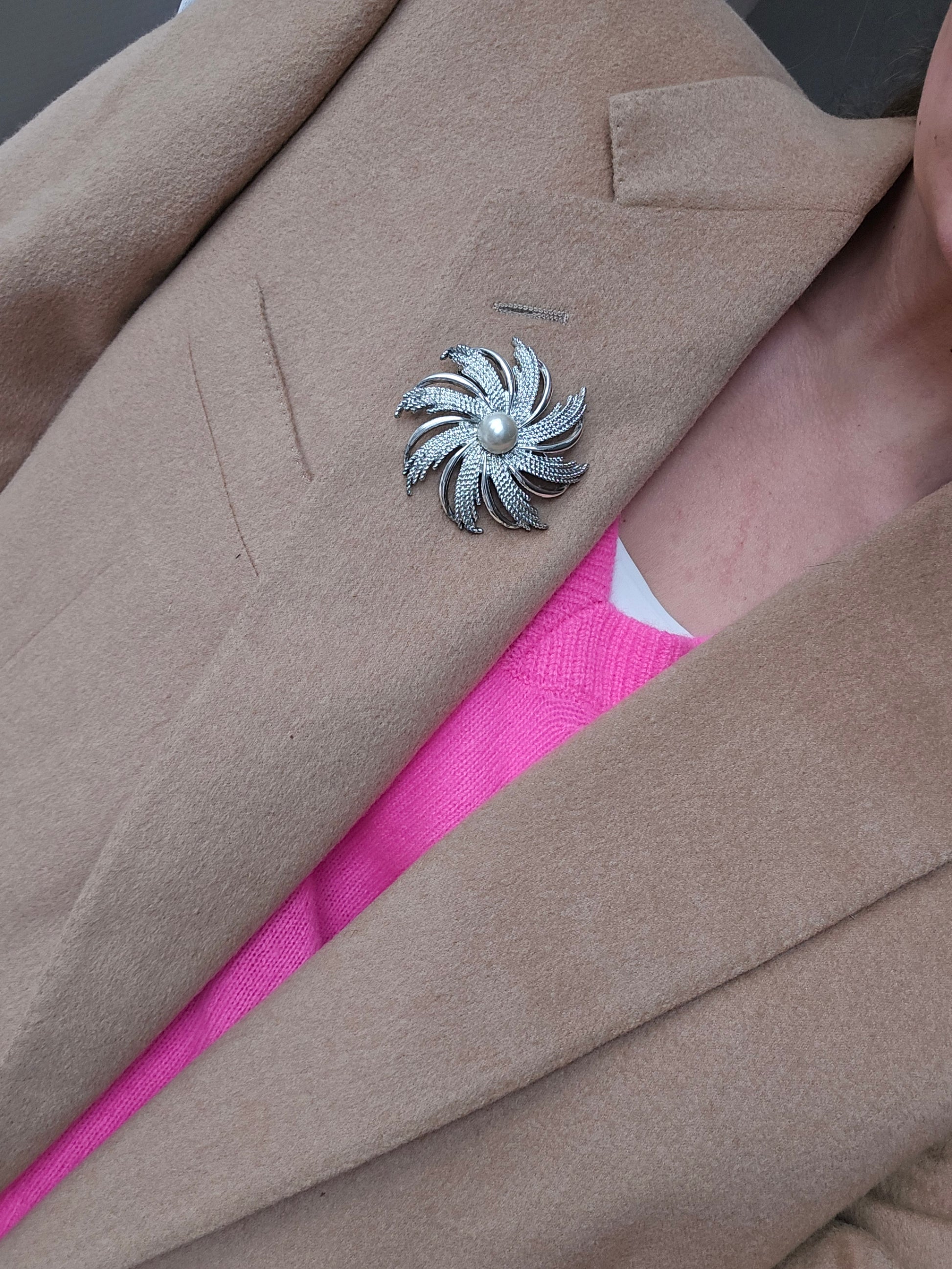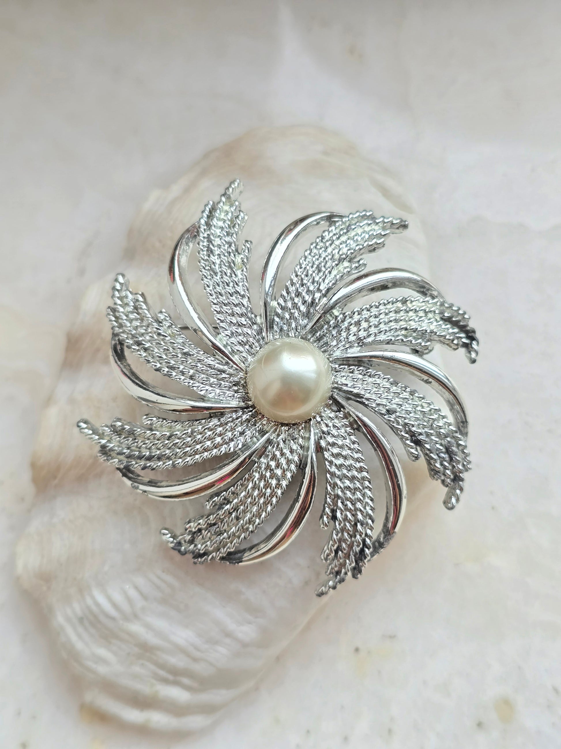 Vintažinė sidabro spalvos Sarah Coventry sagė snaigė