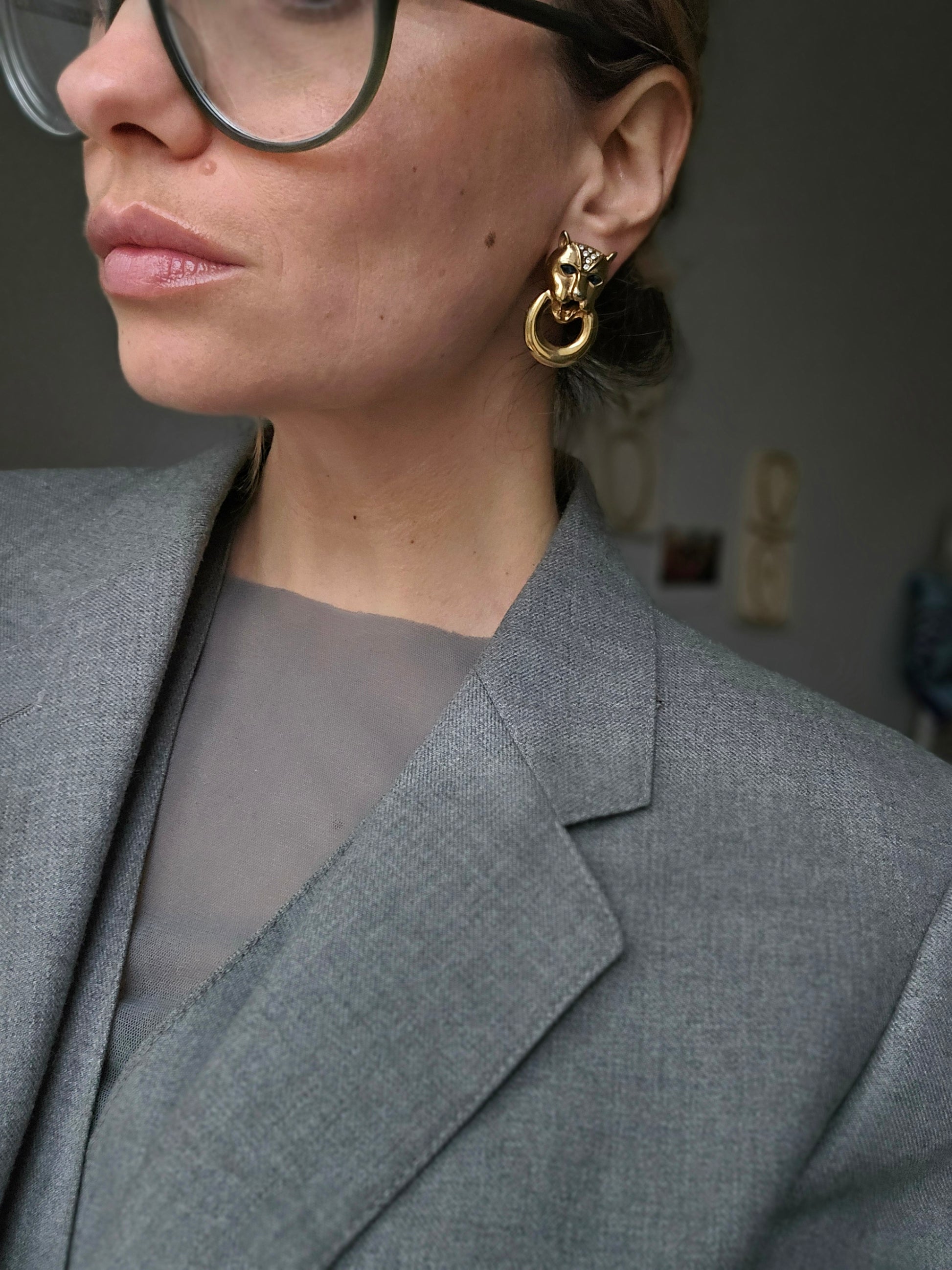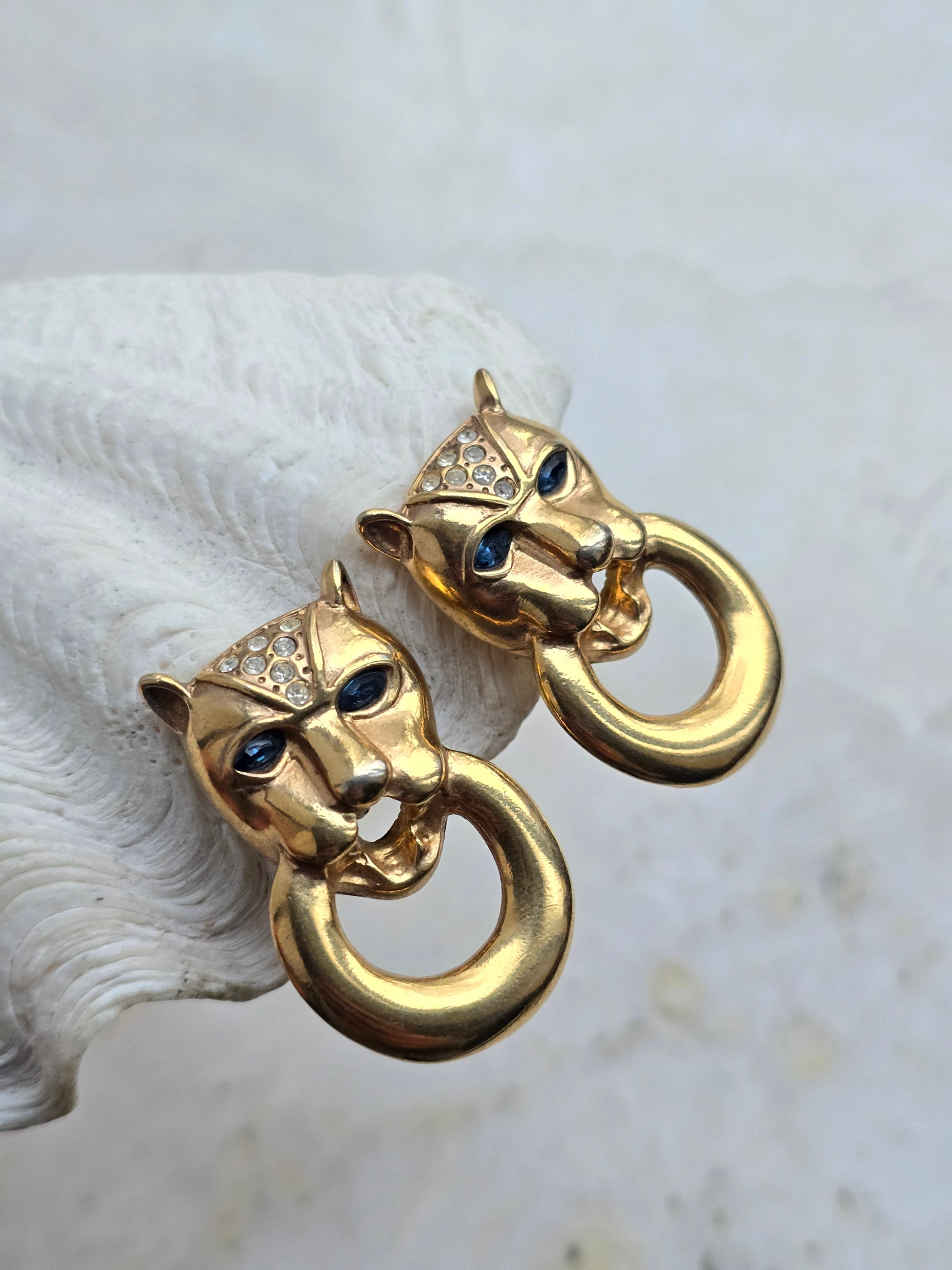 Vintažiniai aukso spalvos "door knob" stiliaus klipsai panteros