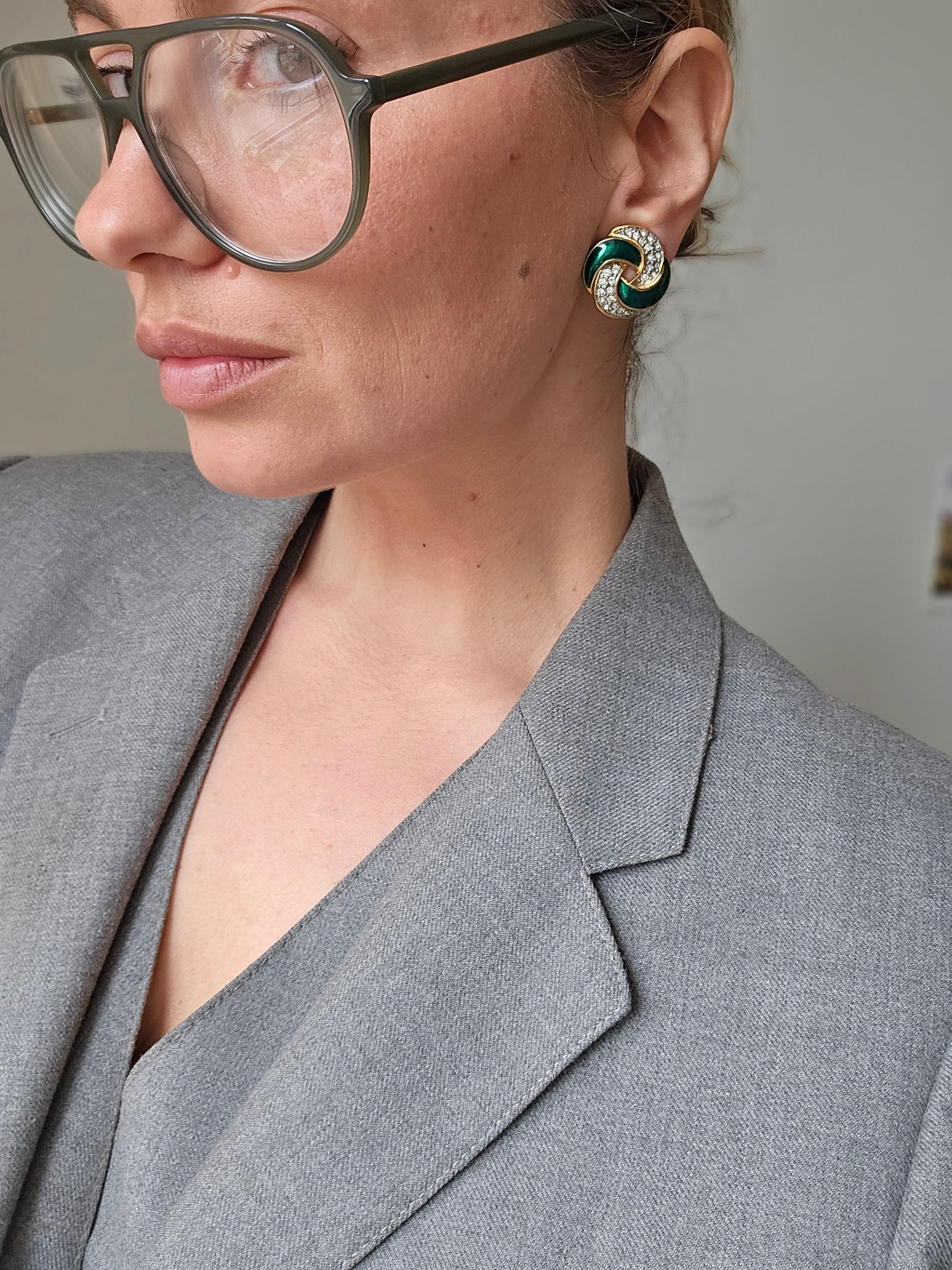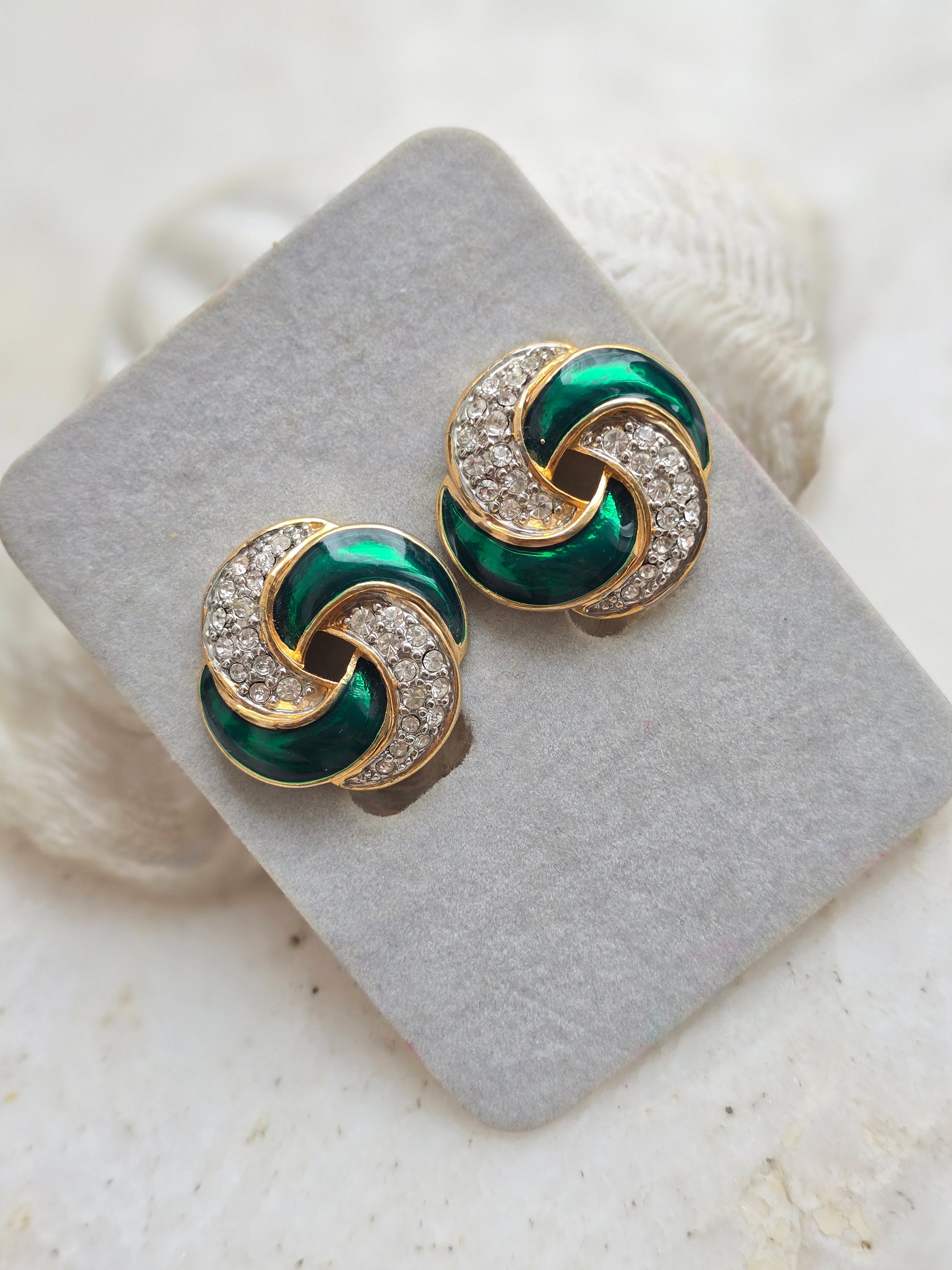 Vintažiniai CABOUCHON klipsai su kristalais