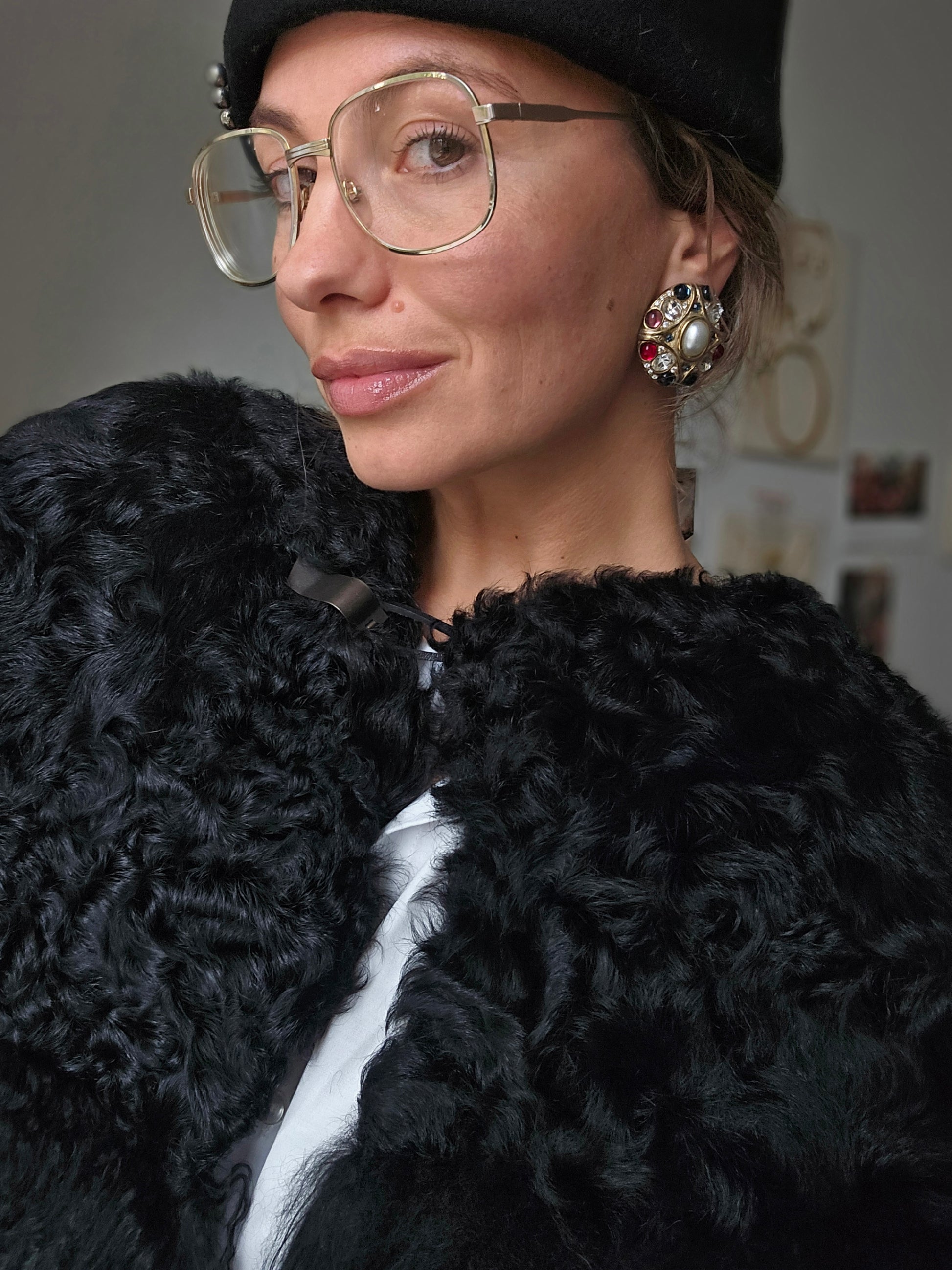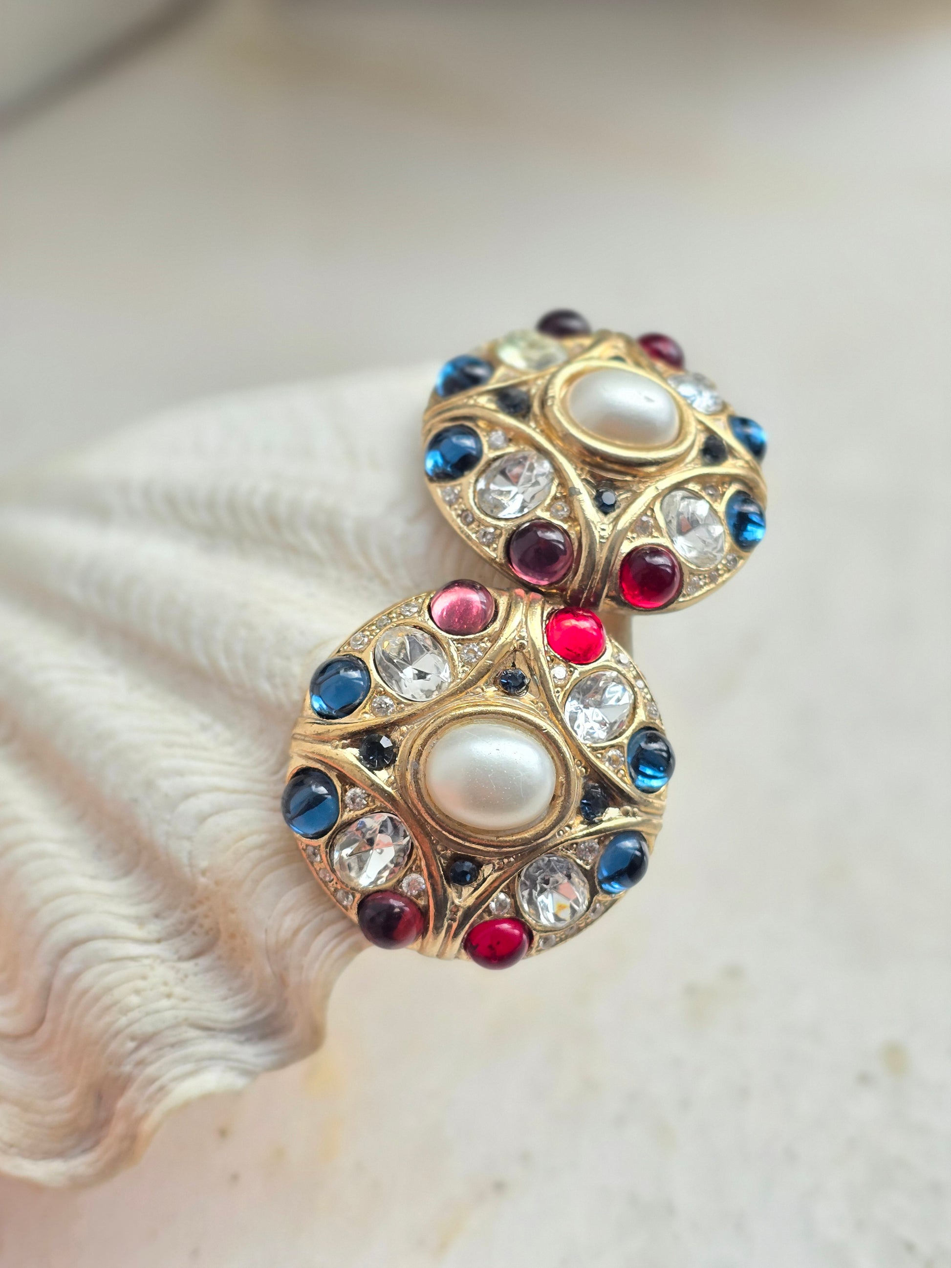 Vintažiniai masyvūs klipsai su stiklo kristalais