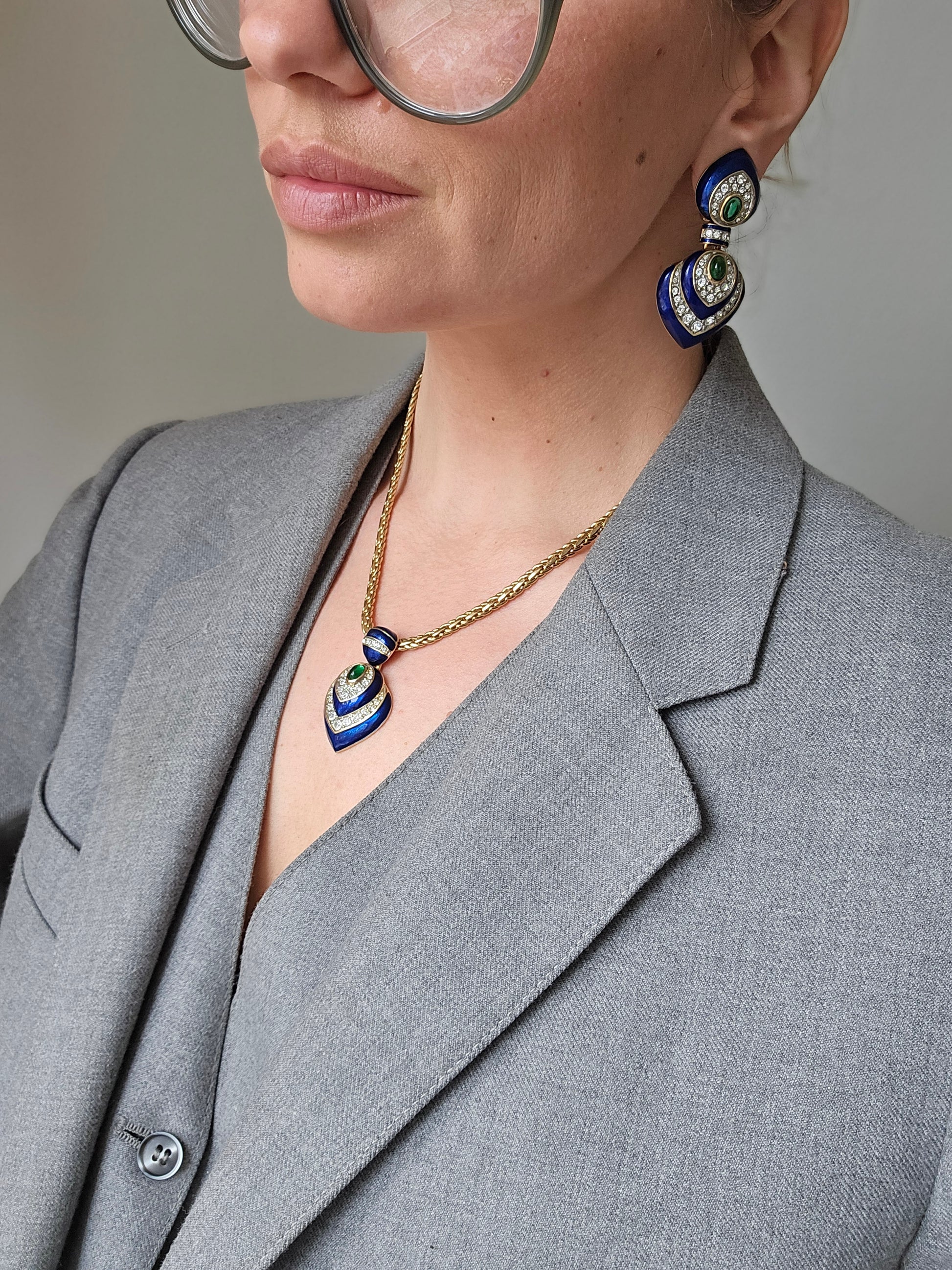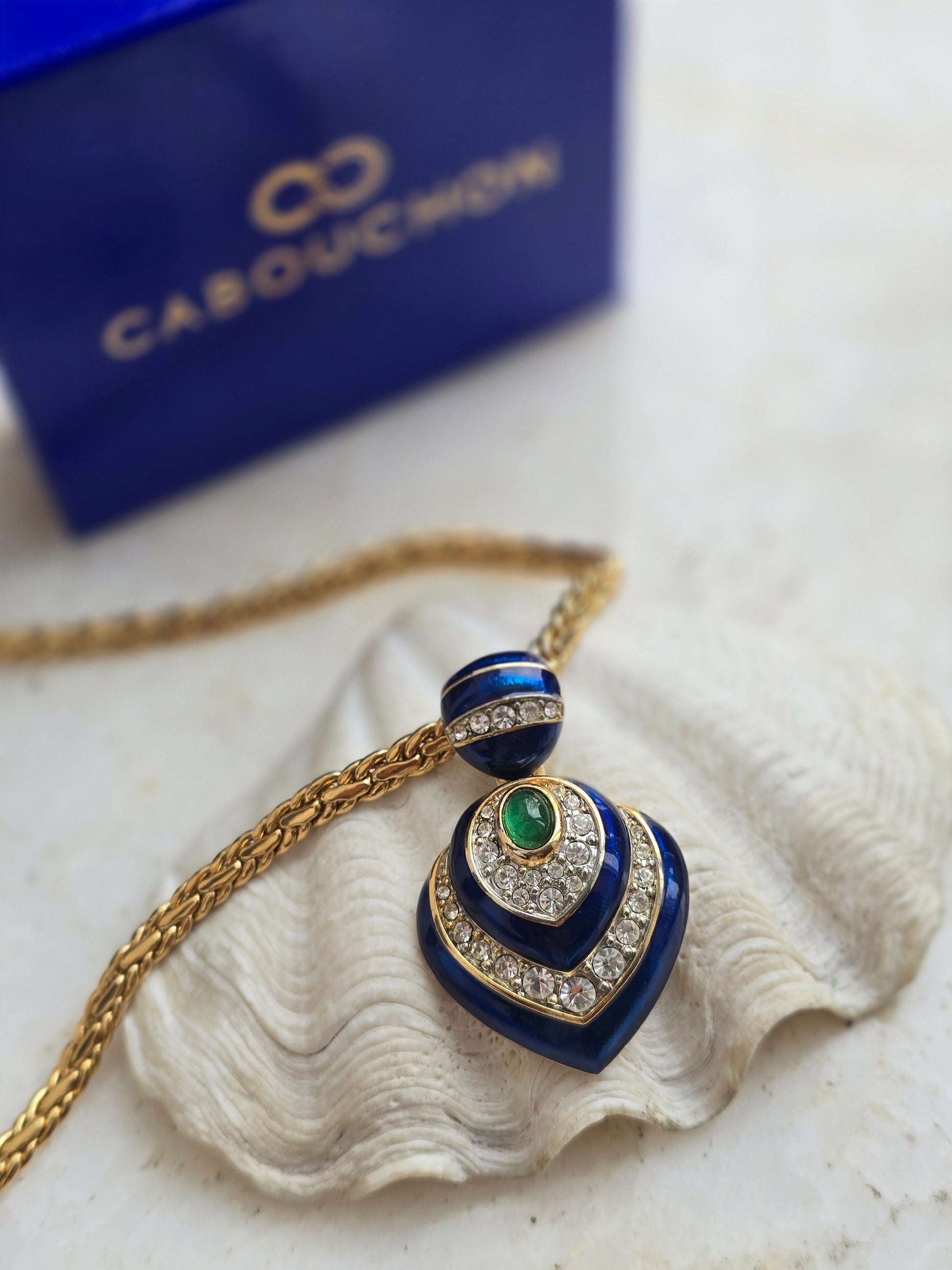 Vintažinis CABOUCHON kaklo papuošalas originalioje dėžutėje